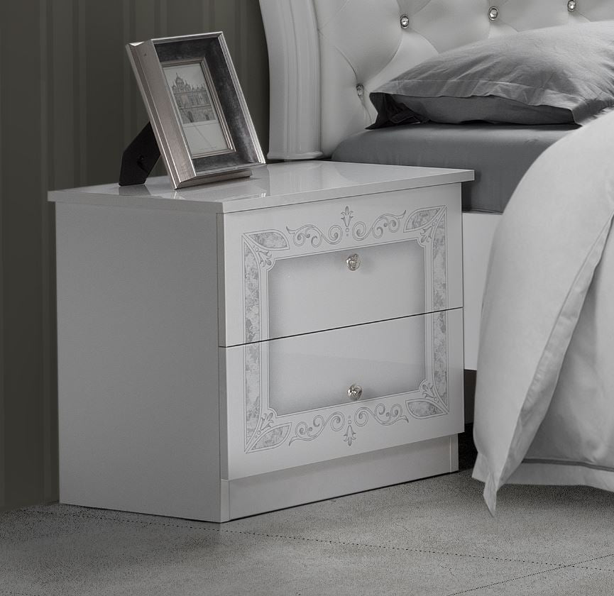 Luiza Nachtkommode 2er Set Weiß Hochglanz / Silber