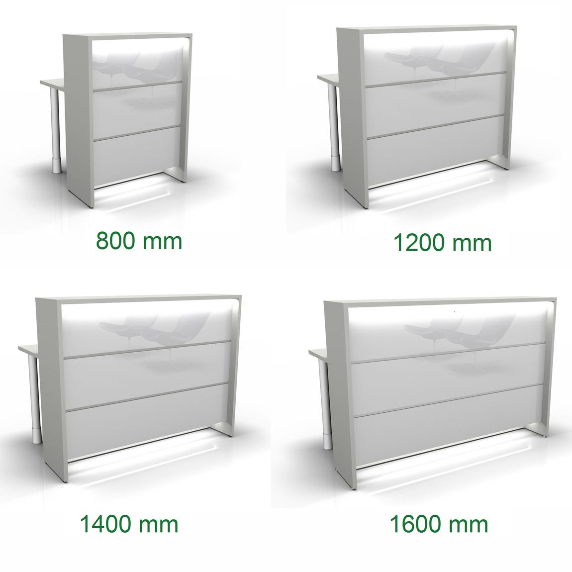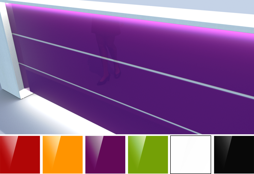 - Optional: mit 4mm gehärtetes Lacobel-Glas für Thekenoberkante in verschiedenen Farben und GrößÂen erhältlich