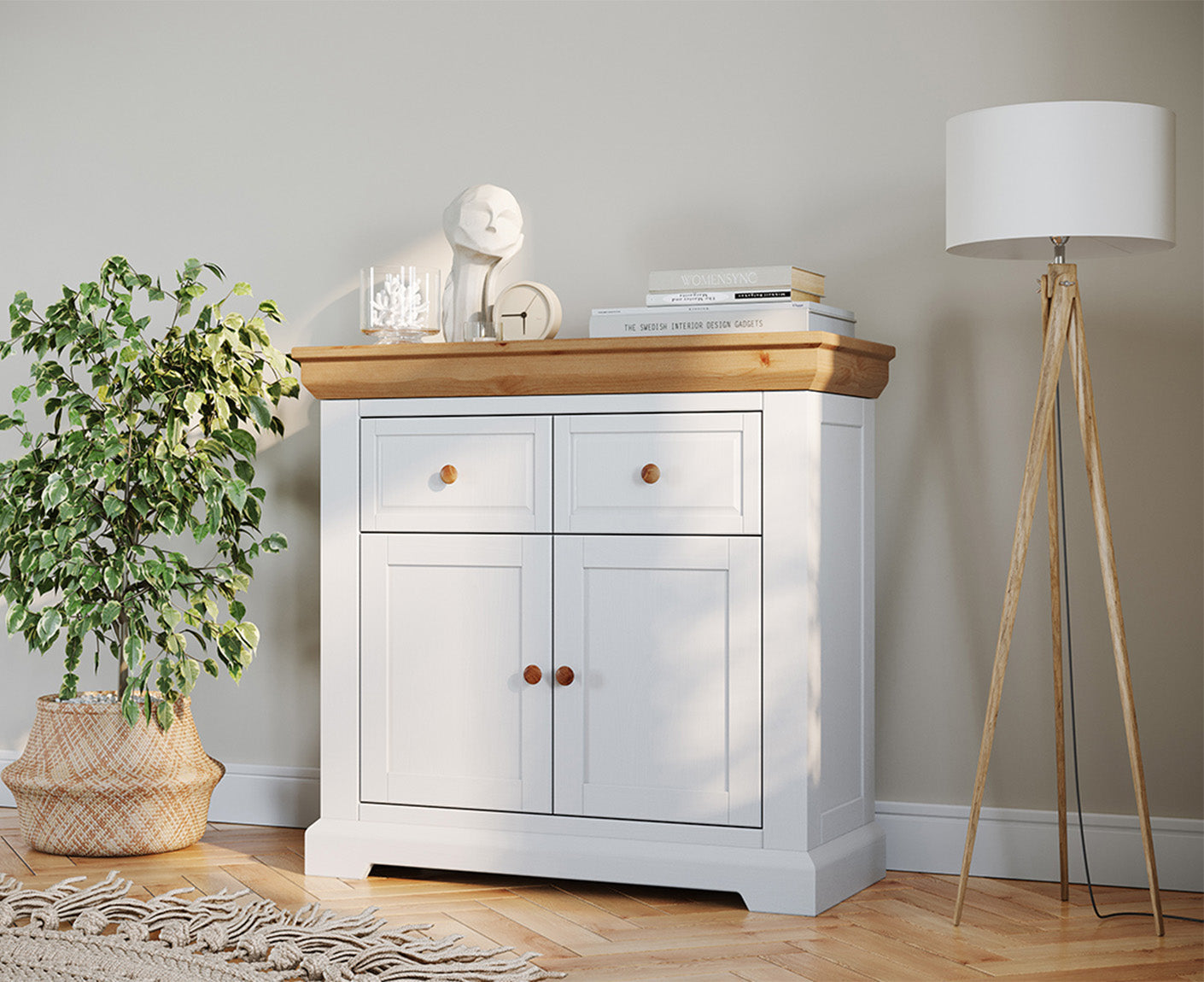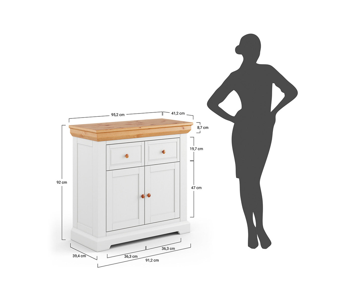 Marone Elite Kommode 2-türig Schmal Massivholz Weiß / Grau
