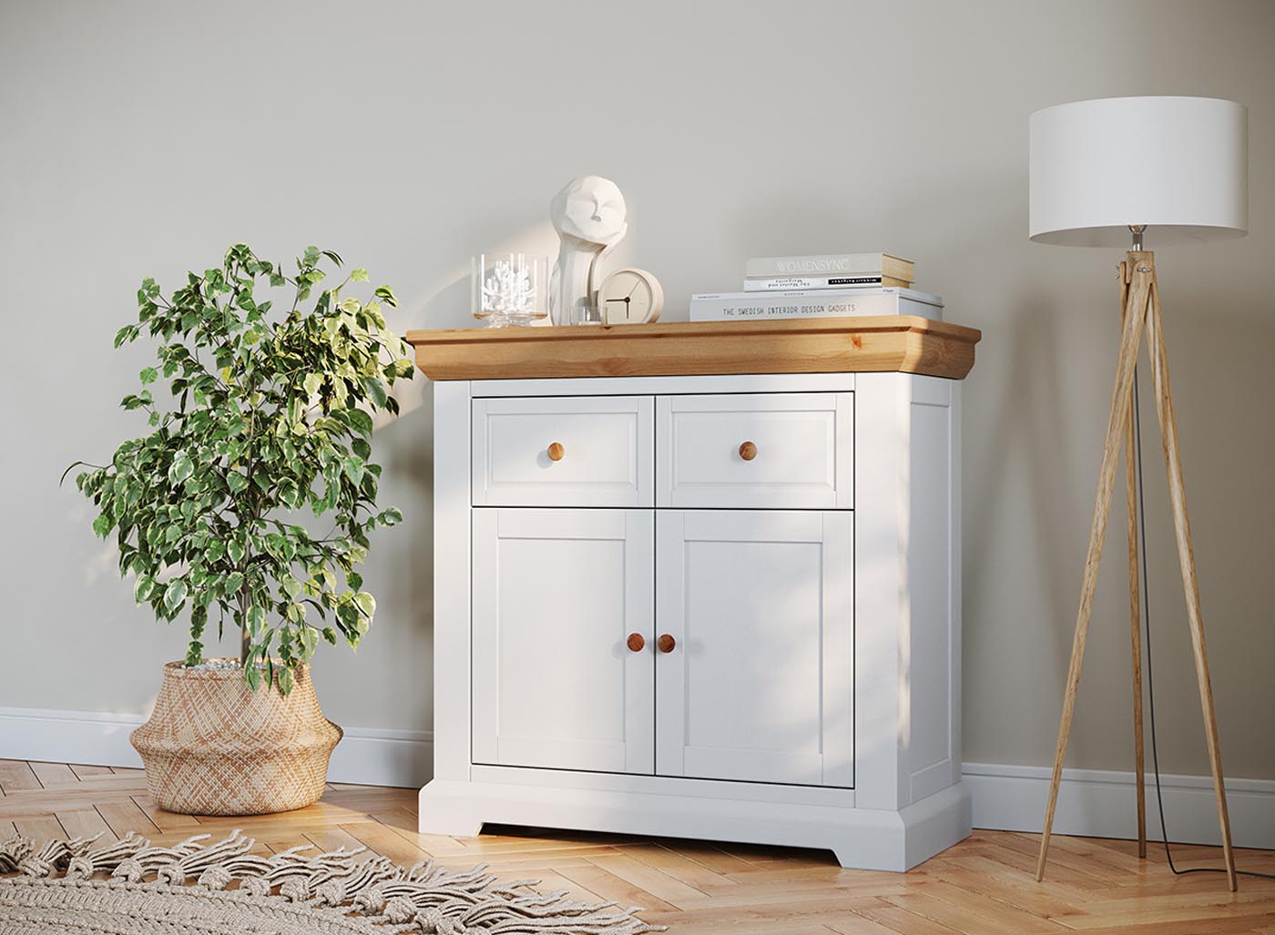Marone Elite Sideboard 2-türig Schmal Weiß/Kiefer