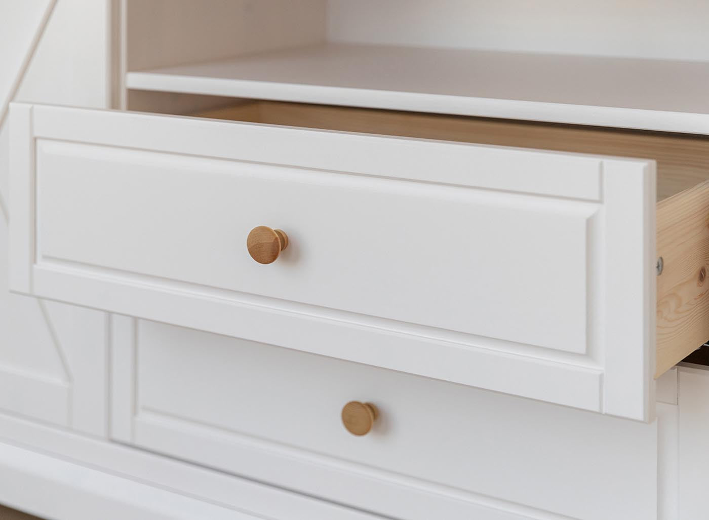 Korpus: Massivholz, finnische Kiefer lackiert Warmweiß