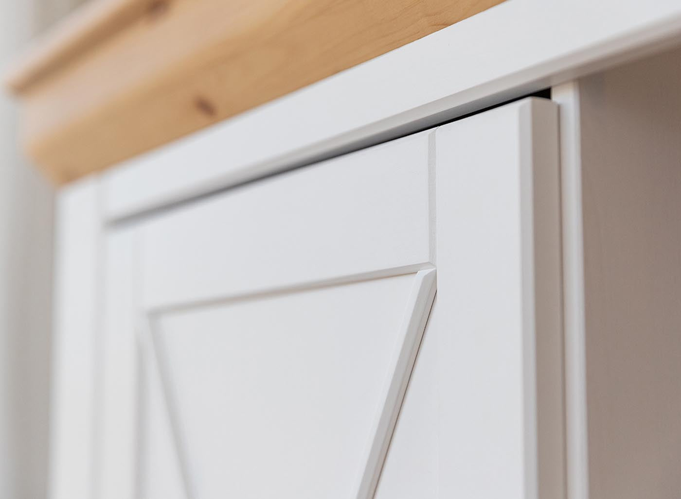 Front: Massivholz, finnische Kiefer lackiert Warmweiß
