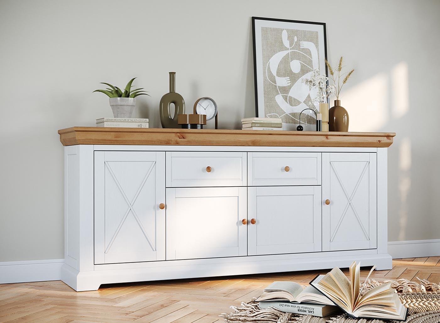 Marone Elite Sideboard 4-türig Weiß/Kiefer