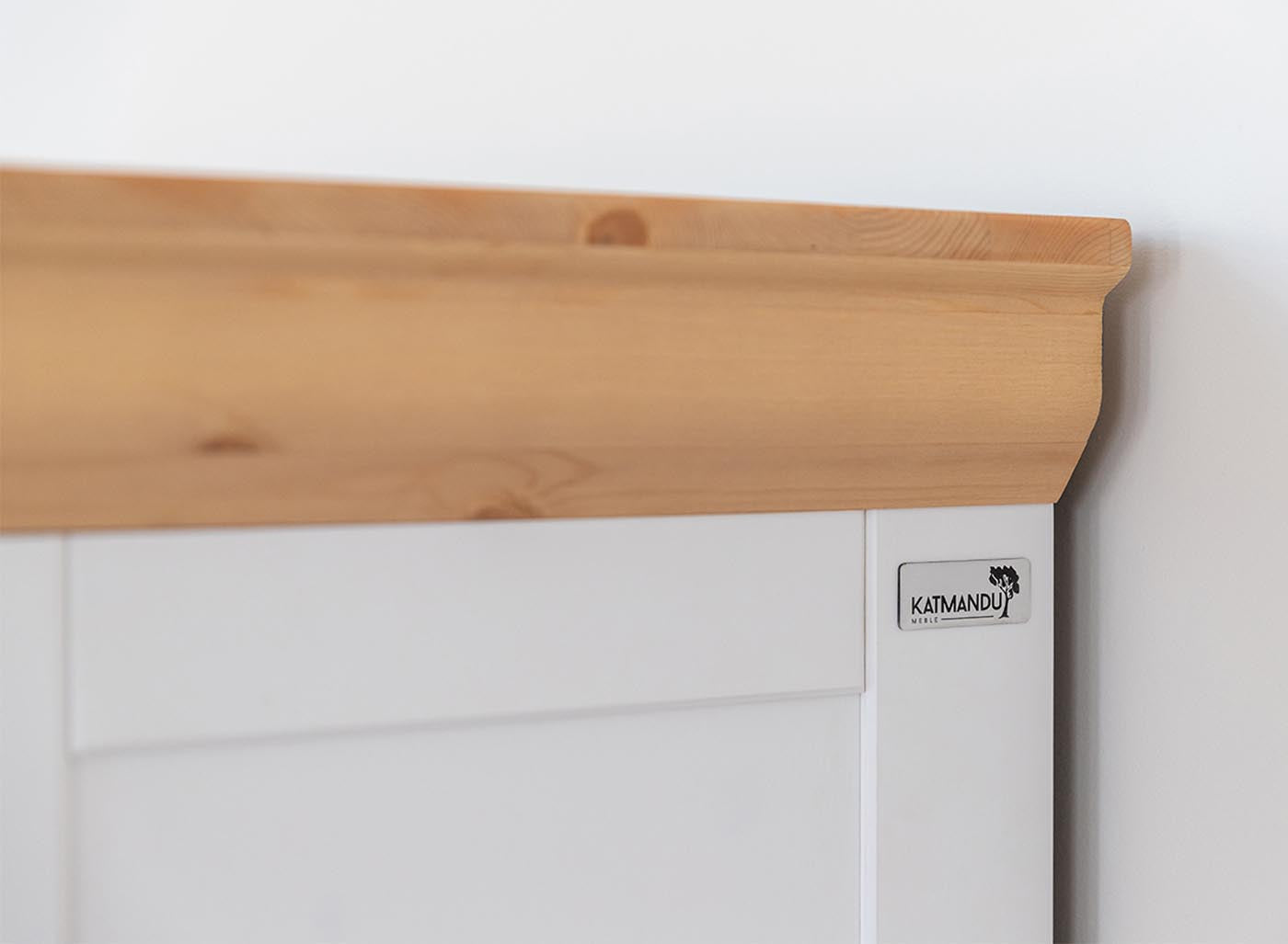 Front: Massivholz, finnische Kiefer lackiert Warmweiß