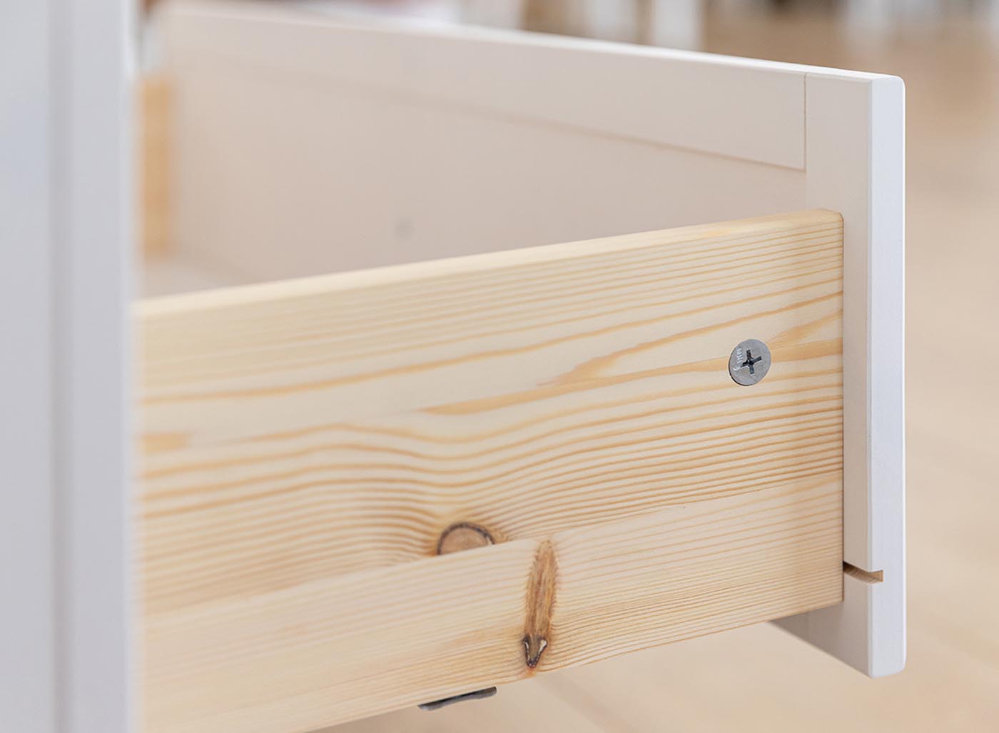 Korpus: Massivholz, finnische Kiefer lackiert Warmweiß