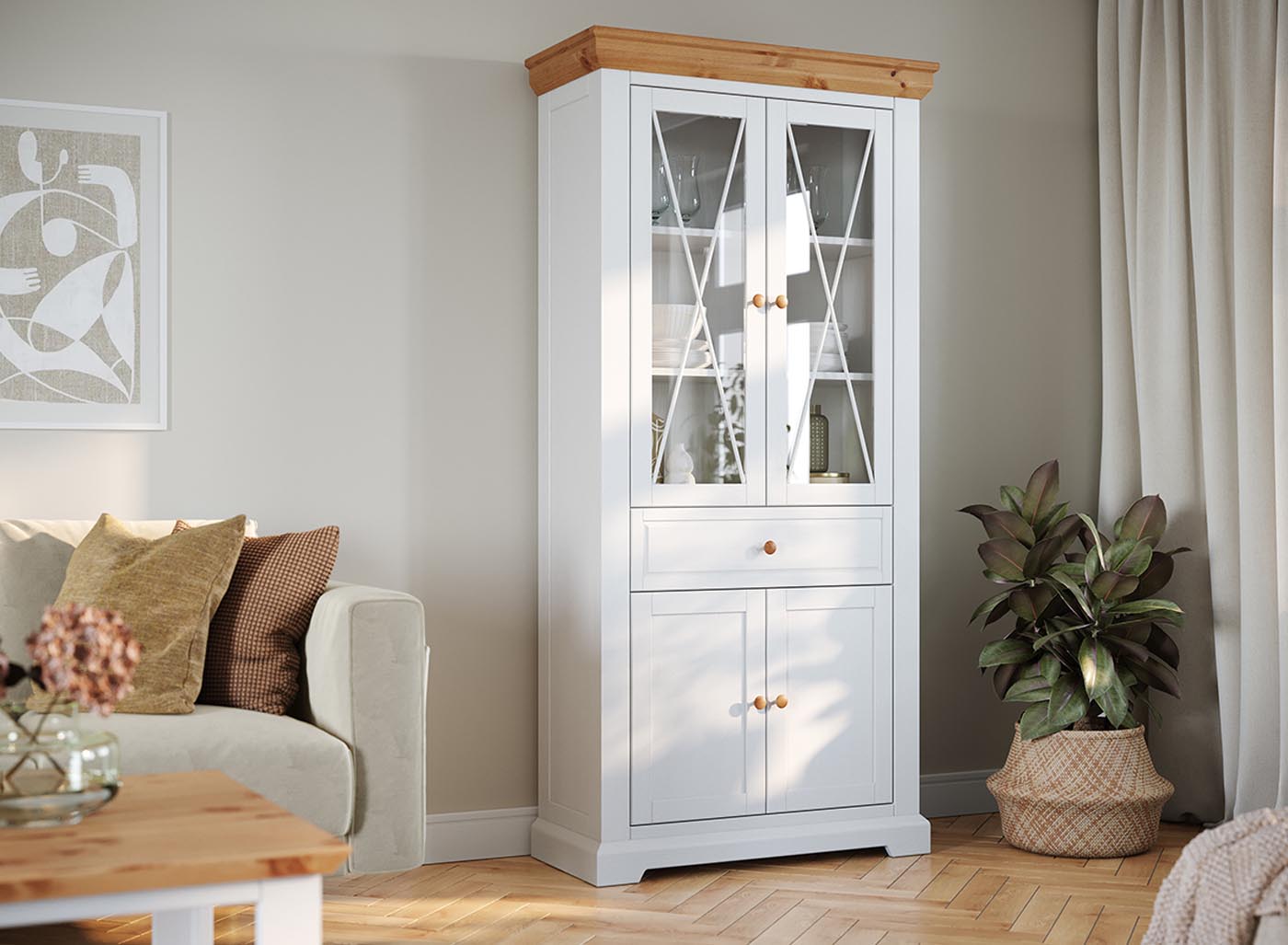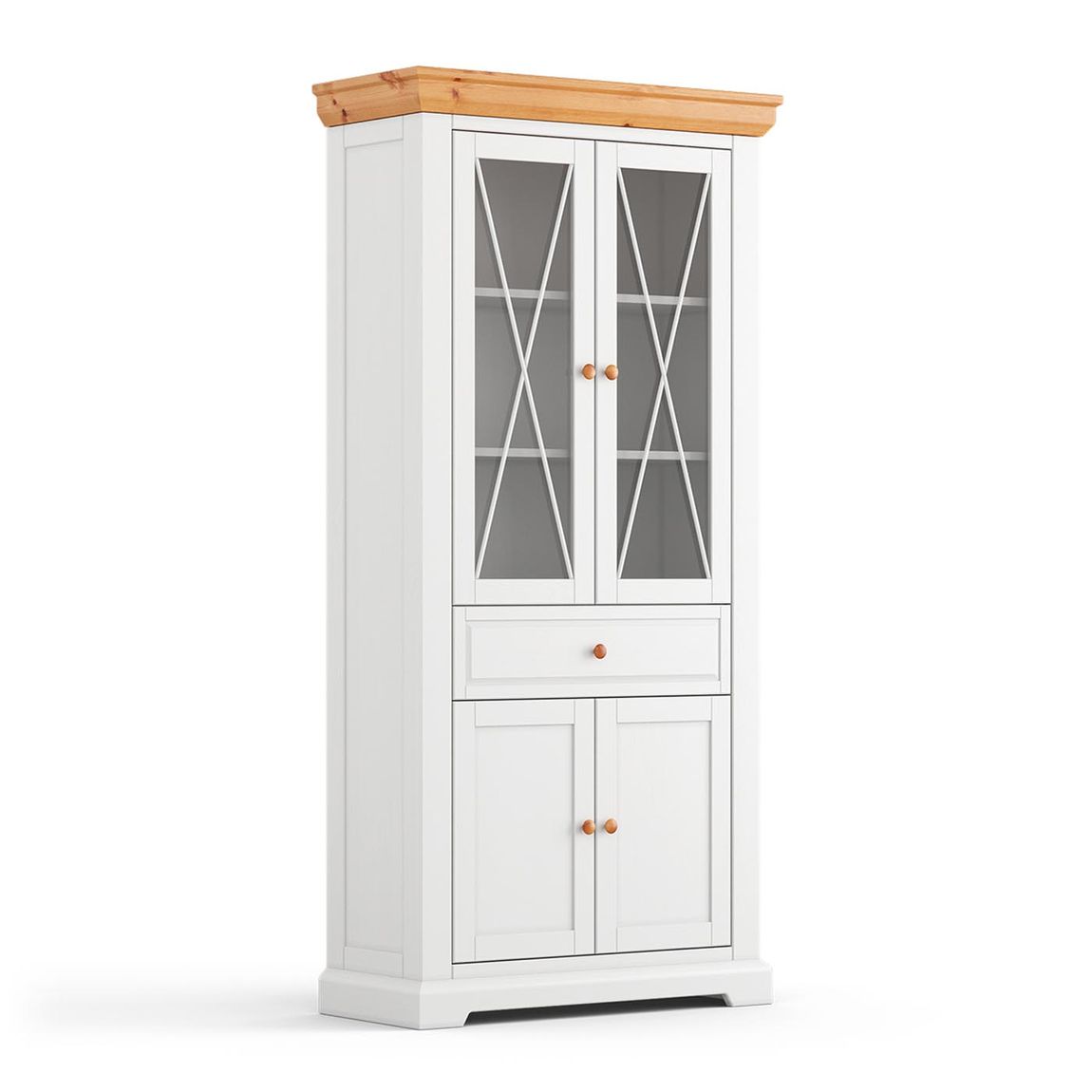 Marone Elite Standvitrine 2-türig Weiß/Kiefer