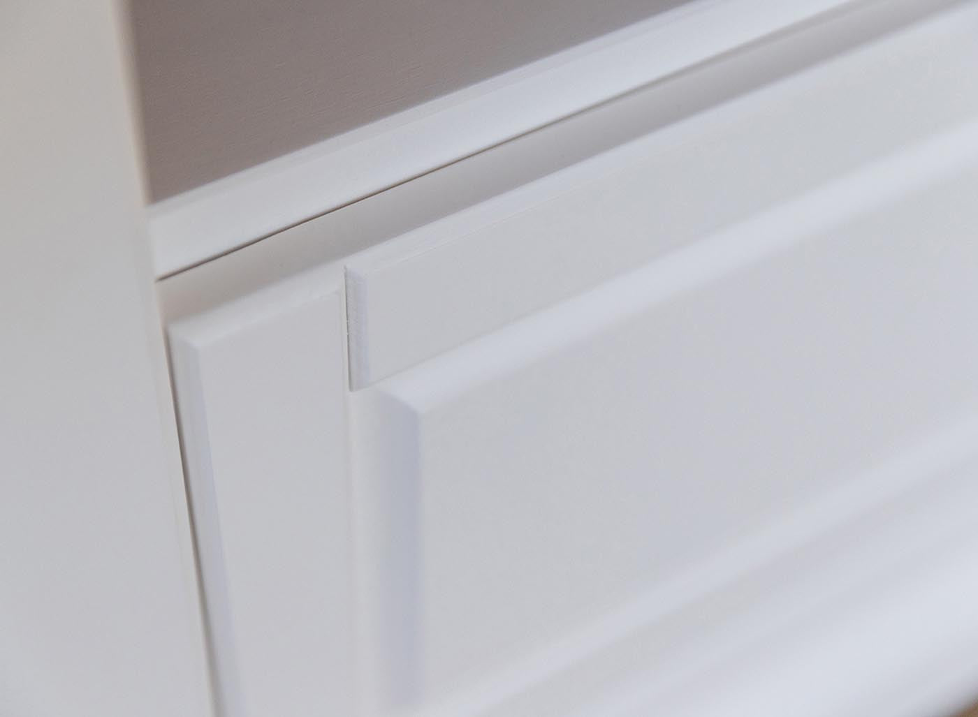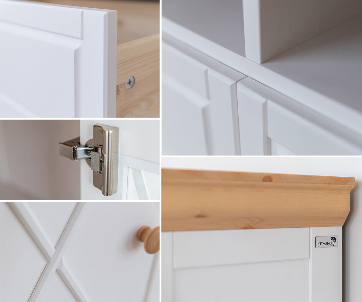 Front: Massivholz, finnische Kiefer lackiert Warmweiß