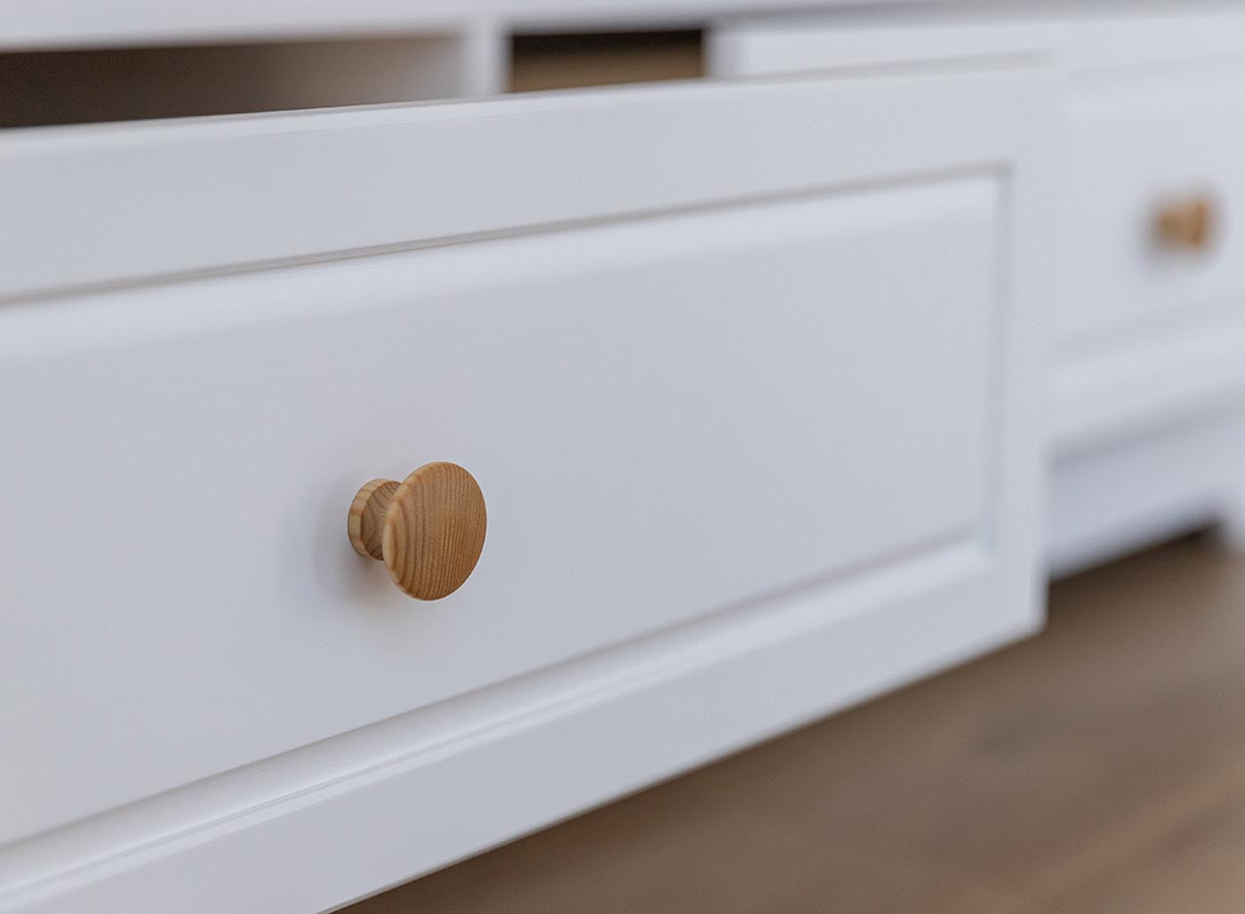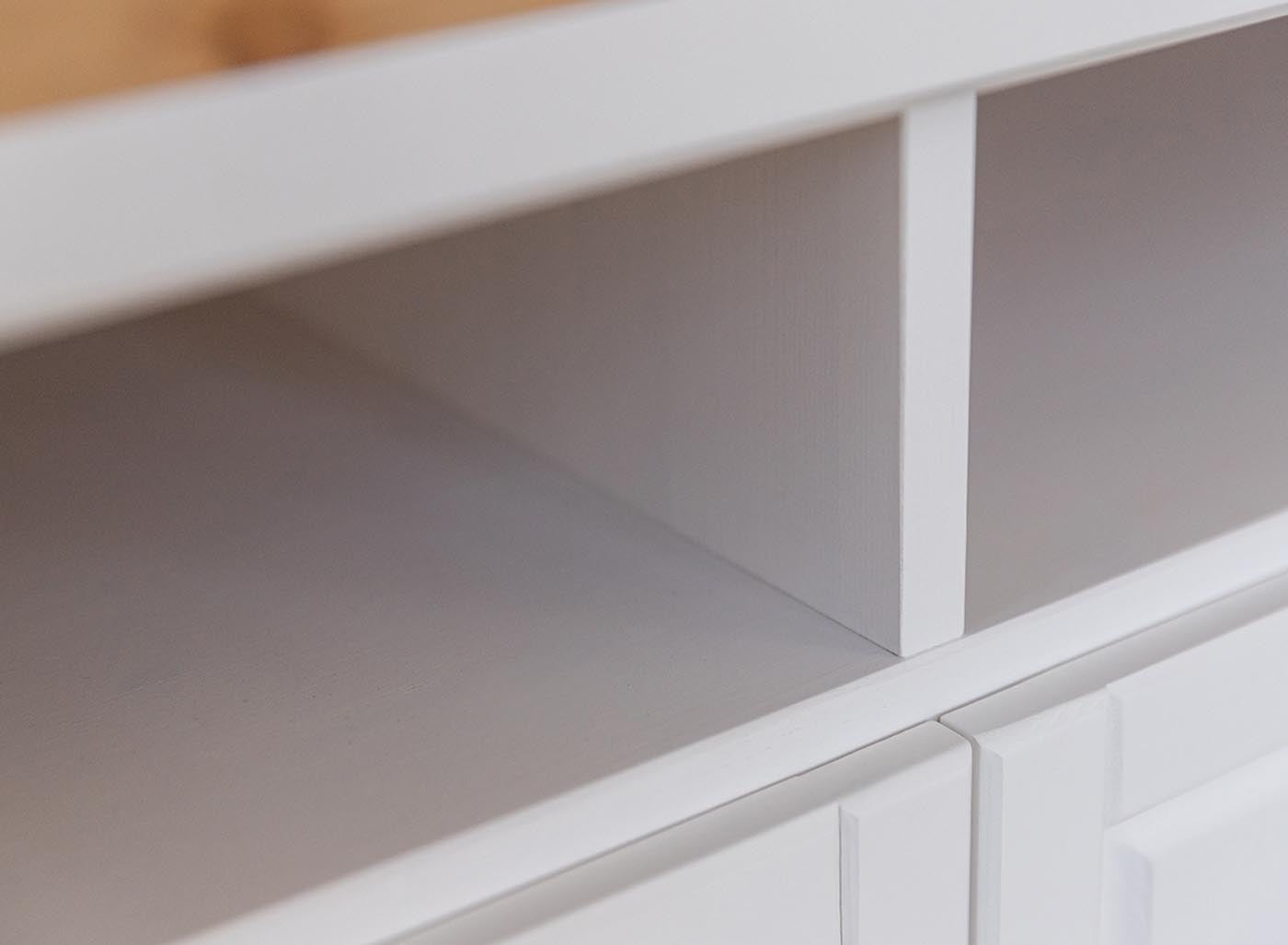 Korpus: Massivholz, finnische Kiefer lackiert Warmweiß