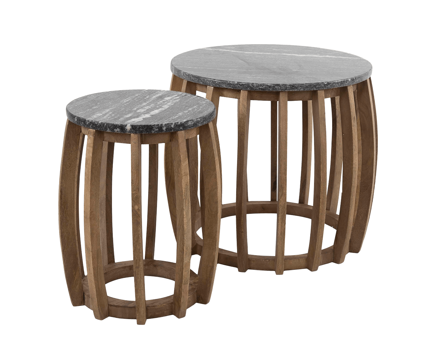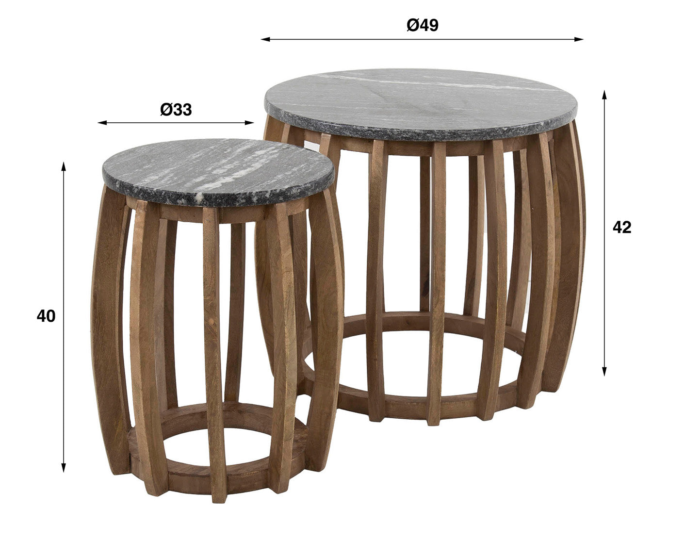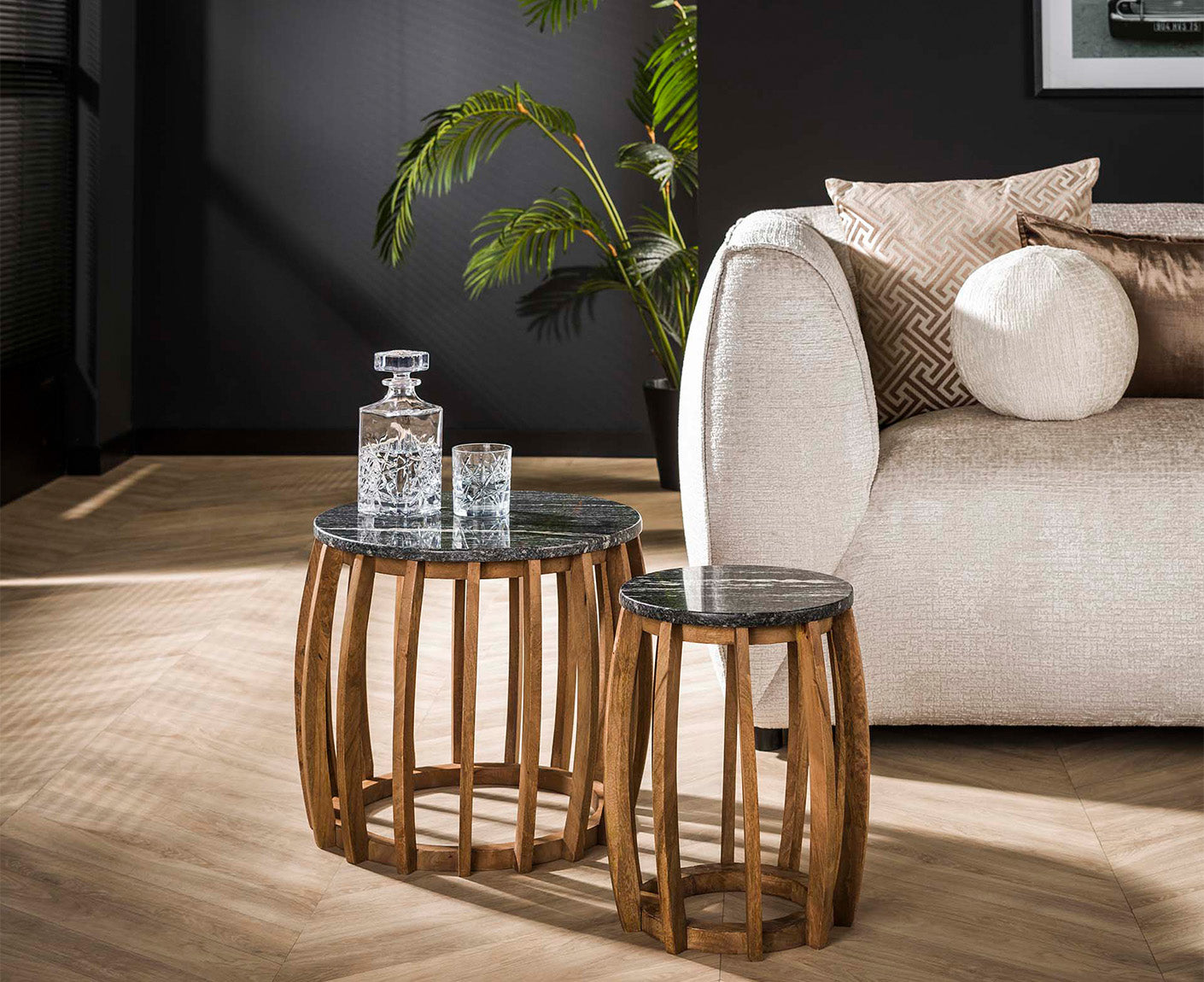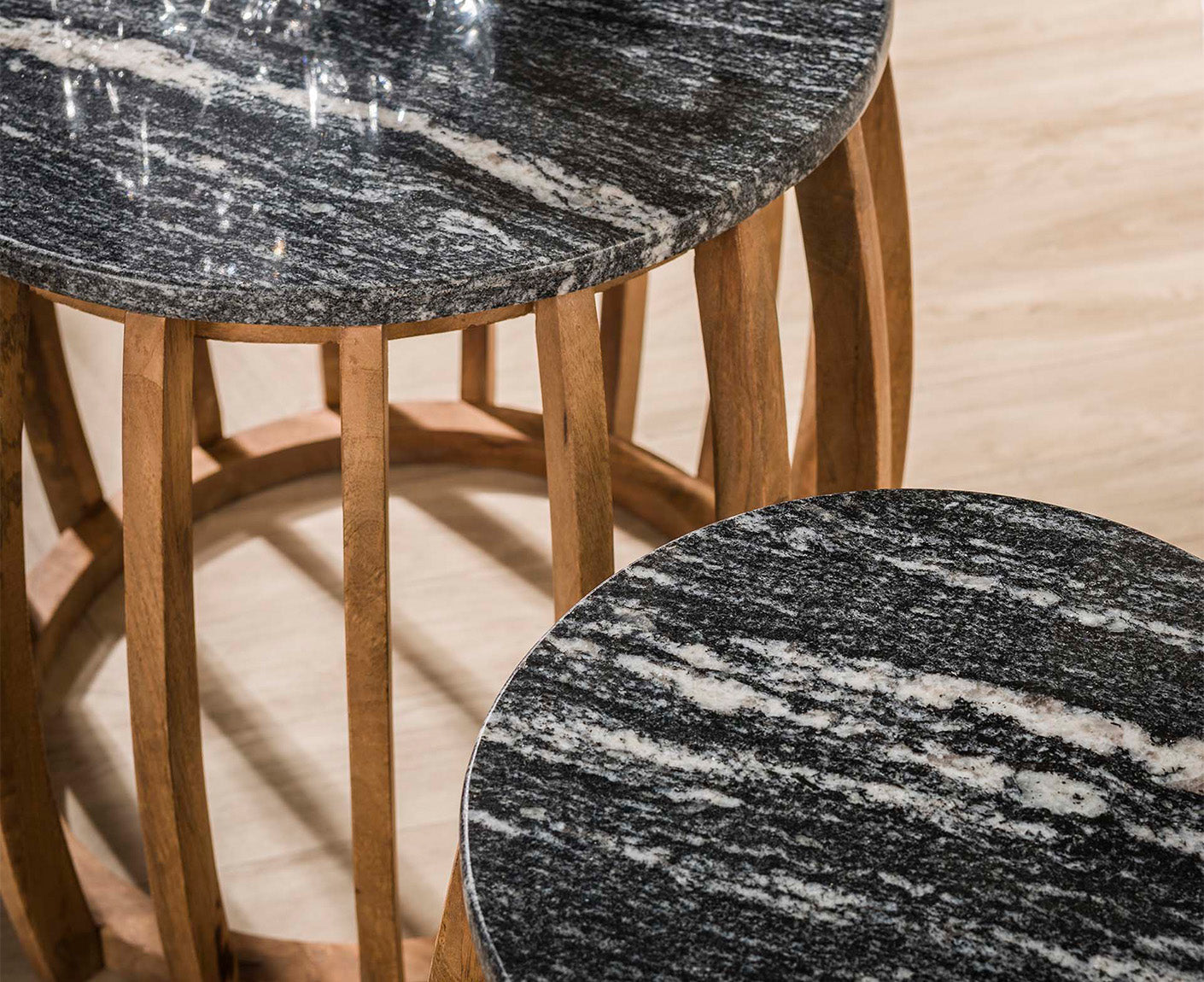 Midnight Beistelltisch 2er Set Mangoholz Massiv / Marmor Schwarz
