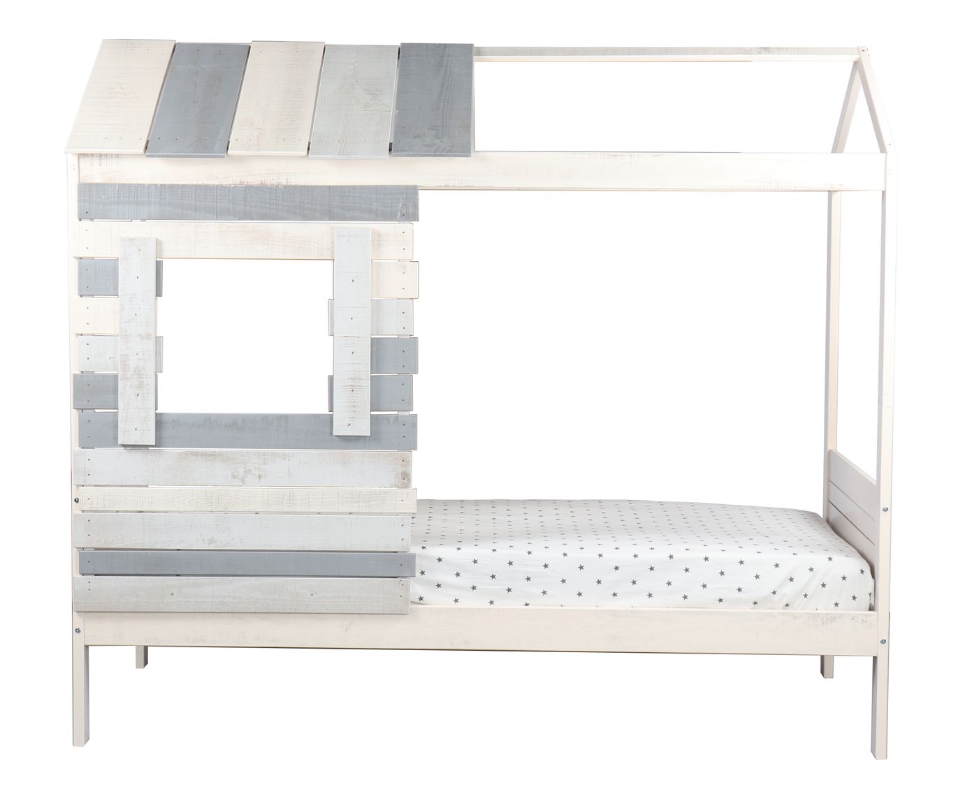 Bett für Kinder, Hausform, grau-weiß, 90x200 cm