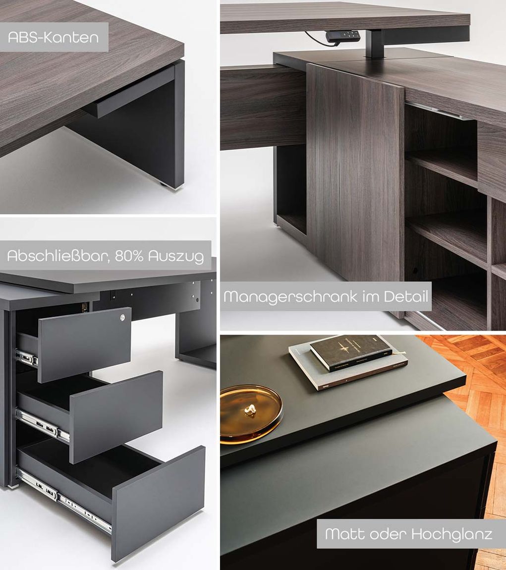 Mito 1 Chefschreibtisch Universell aufbaubar, Größe wählbar, Robinie Hochglanz