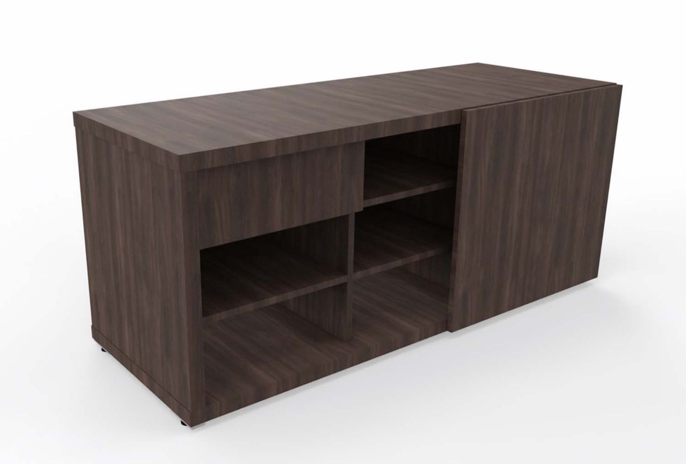 - Oberplatte & Boden: Melaminplatte 18 mm, ABS-Kanten