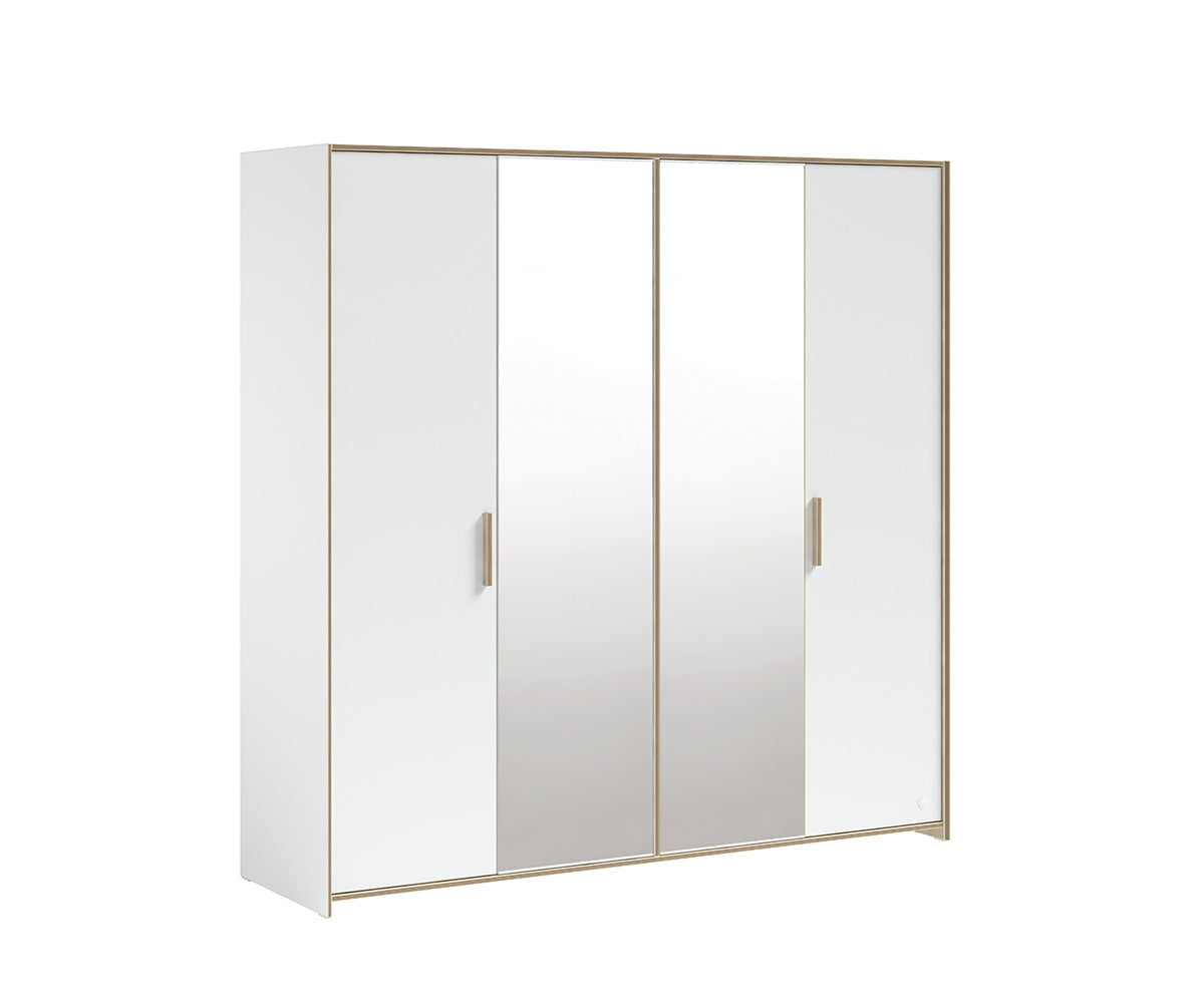 Modera 4-türiger Kleiderschrank Drehtürenschrank mit Spiegel Weiß