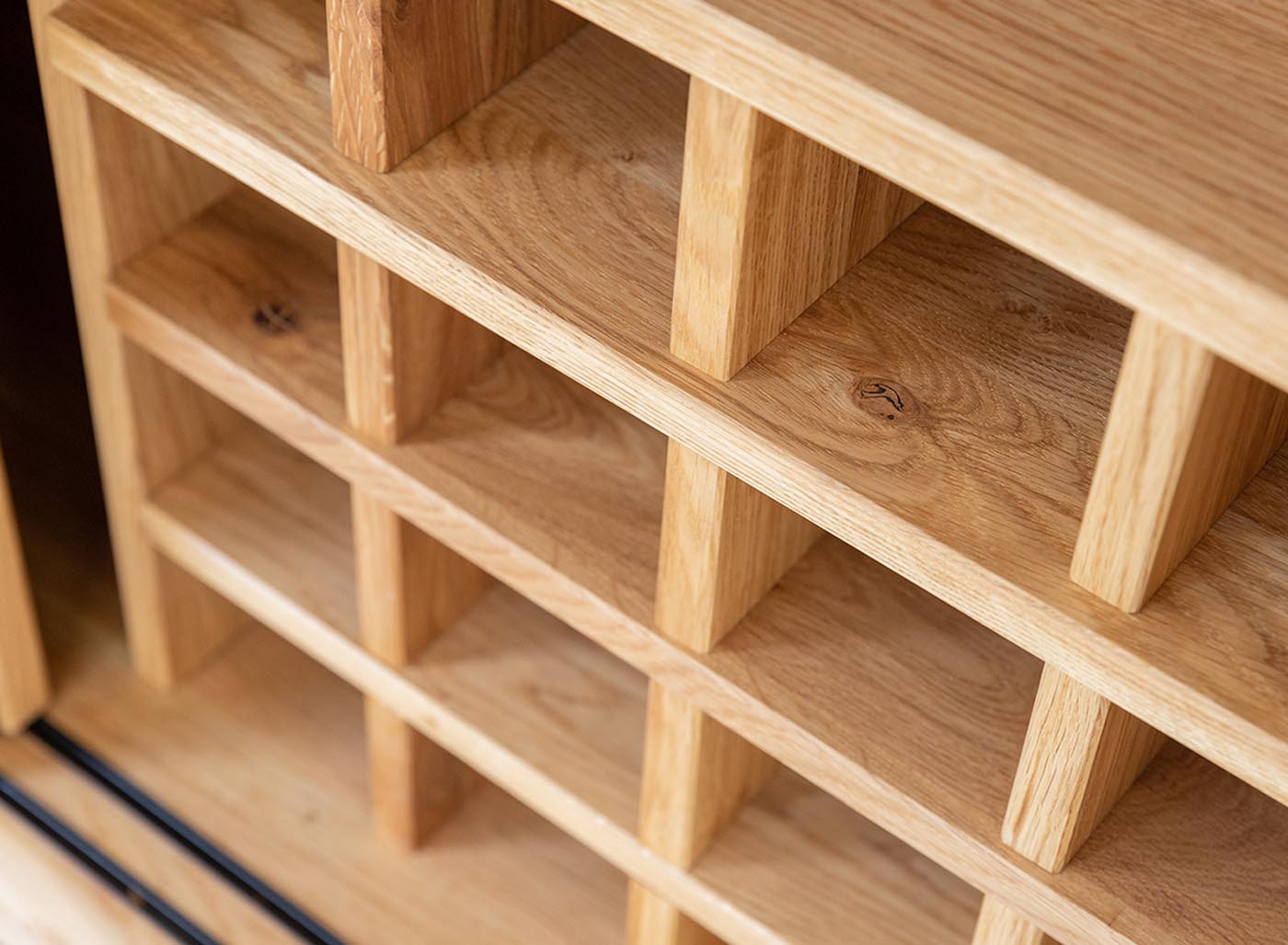 Modern Loft Weinregal Massivholz Wildeiche geölt/Glas Grafit Matt