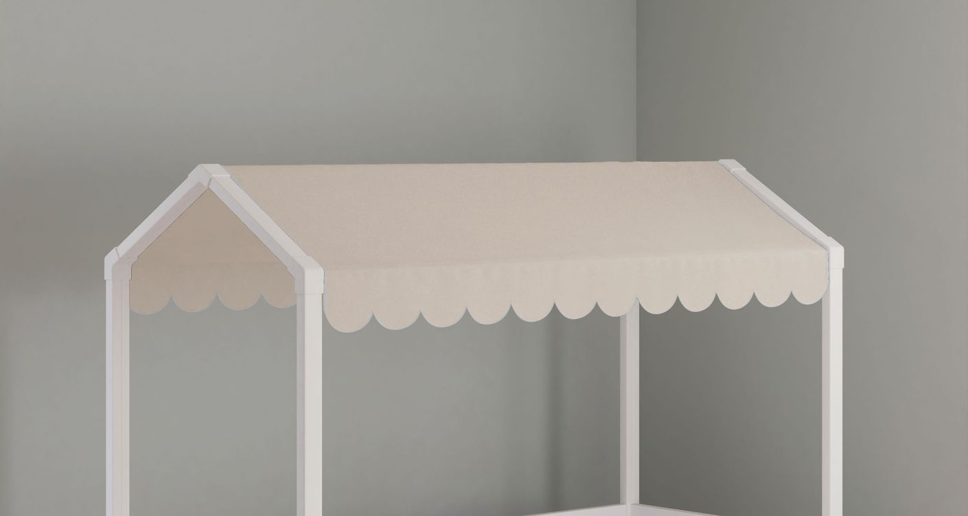 Bett: Babybett mit verschiedenen Stäben zum Verberssern des Tastsinns / Kinderbett mit Dach und Kopfteil