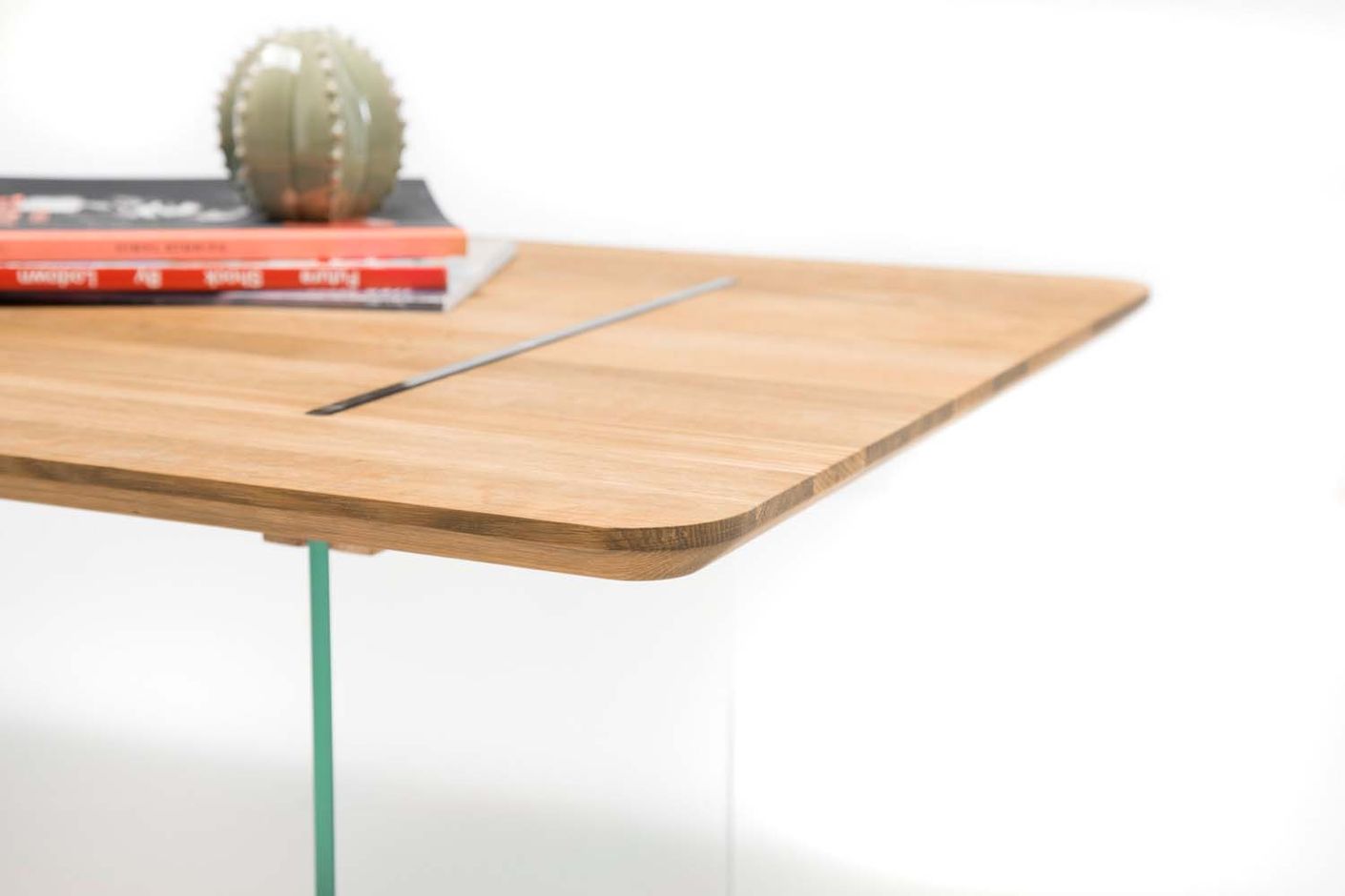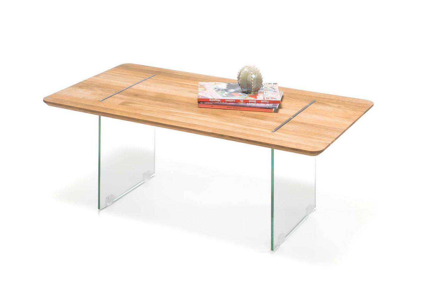 Montreal Couchtisch Eiche Massiv 20mm mit Glasuntergestell