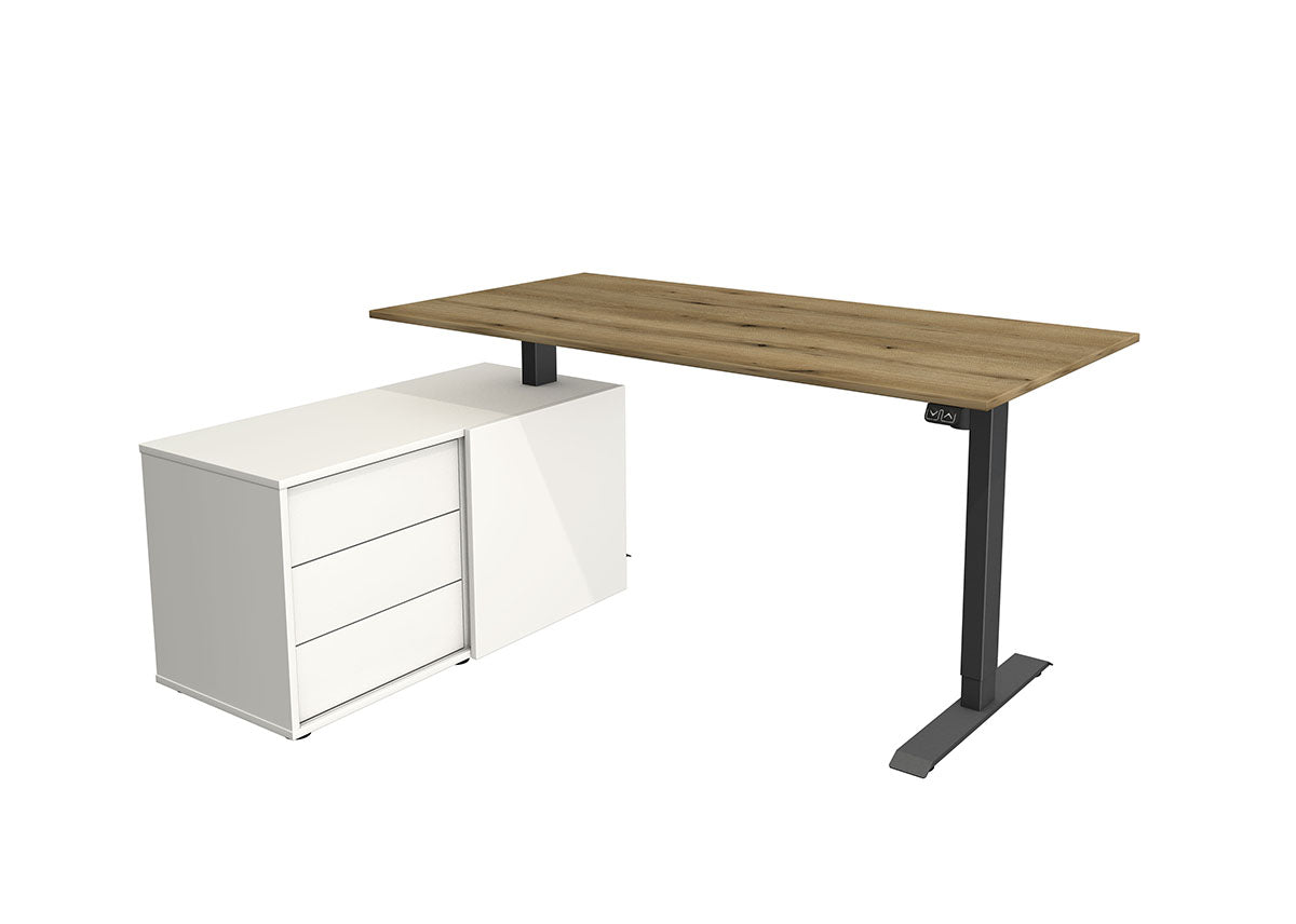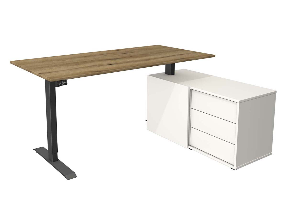 - Schreibtisch: 160 x 80 x 74-123 cm (BxTxH)