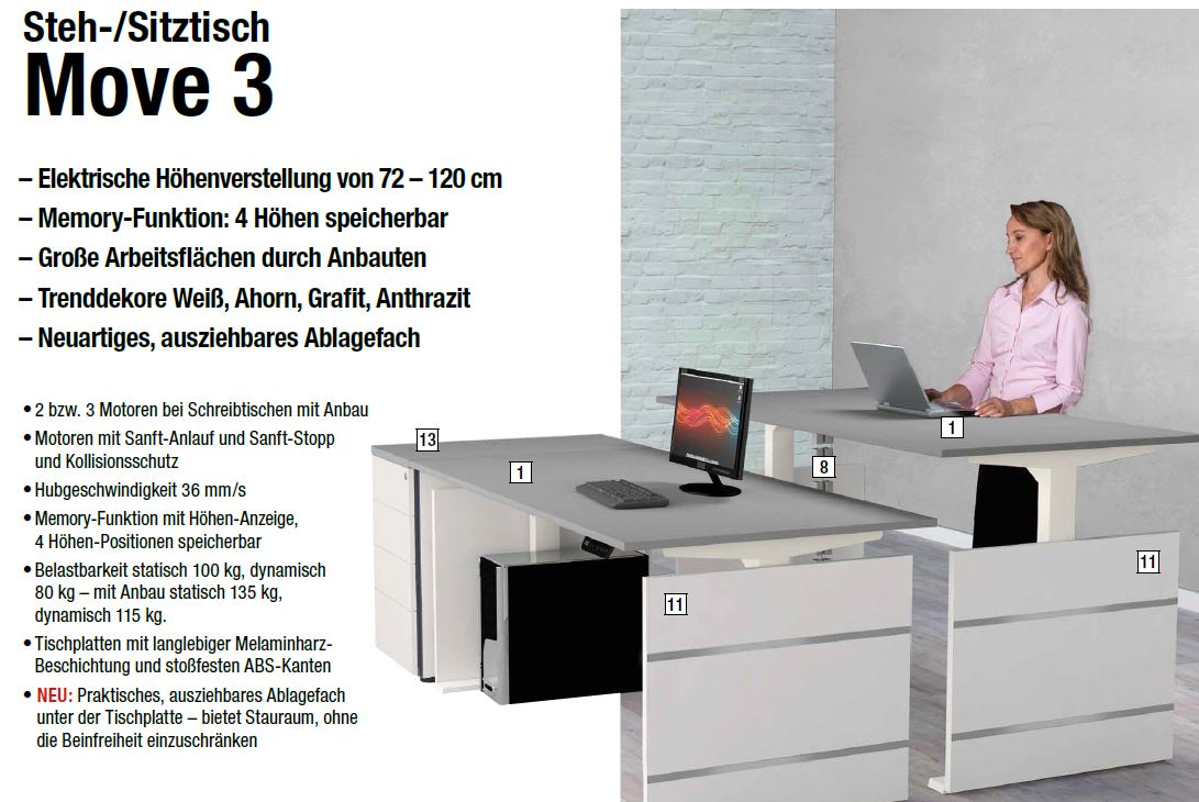 - 2 bzw. 3 Motoren bei Schreibtischen mit Anbau