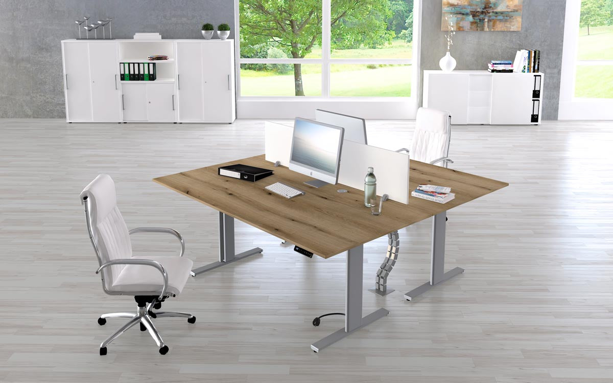 Move 3 Schreibtisch, elektrisch höhenverstellbar, Eiche / Silber