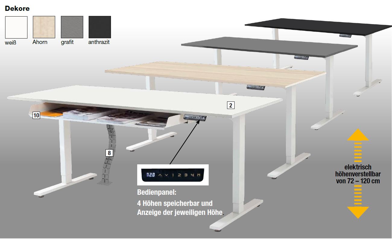 - Elektrische Höhenverstellung von 72 – 120 cm,