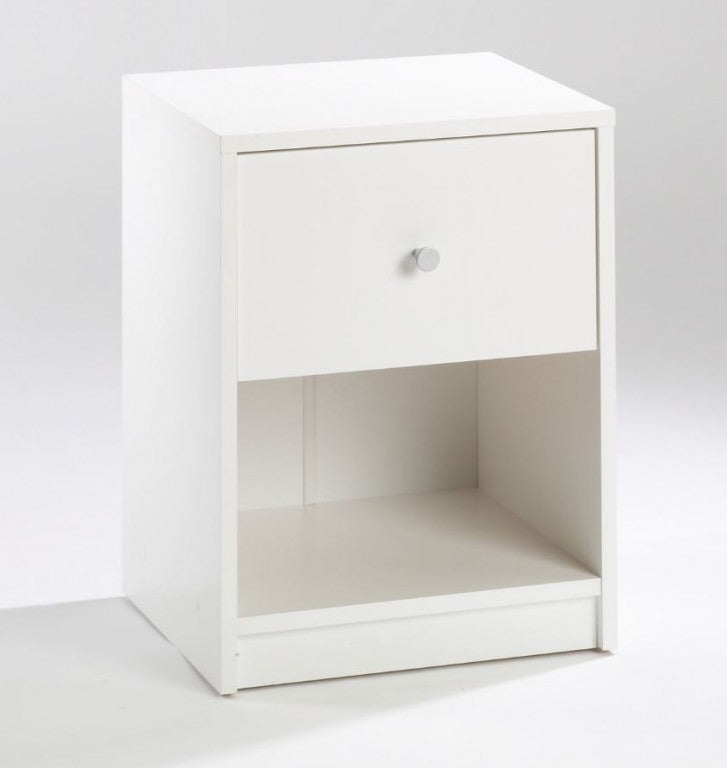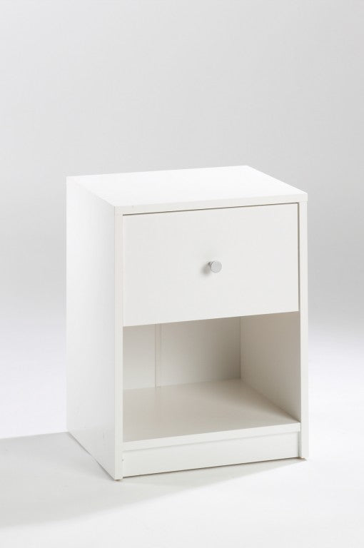 - Nachttisch mit 1 Schublade auf Kunststoffschienen und 1 offenem Fach. Griff aus Kunststoff.