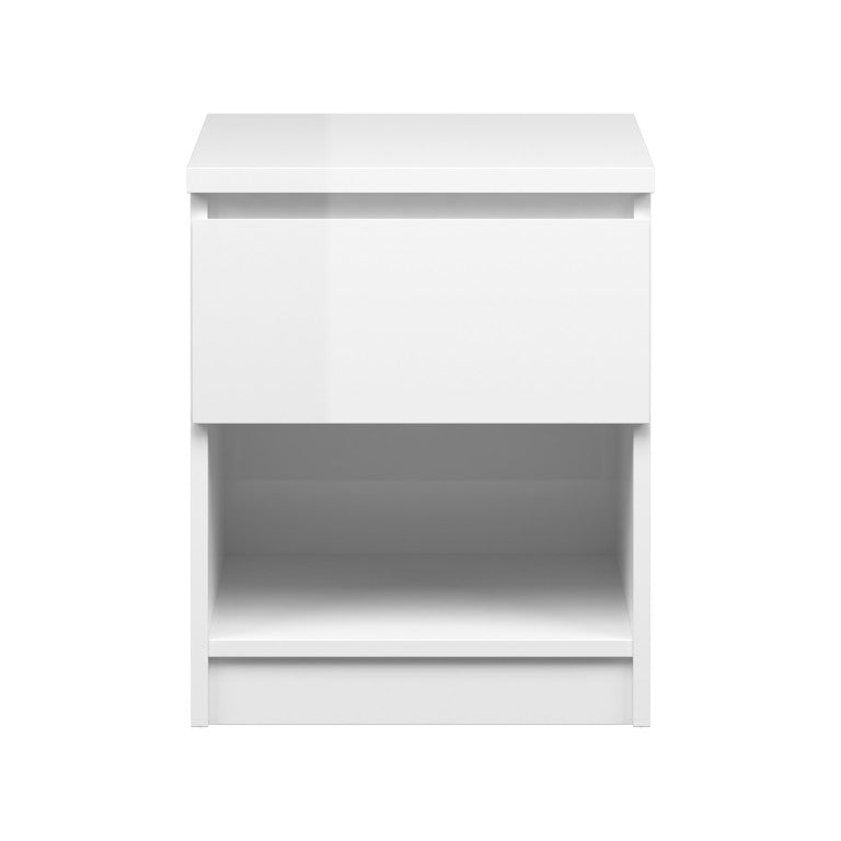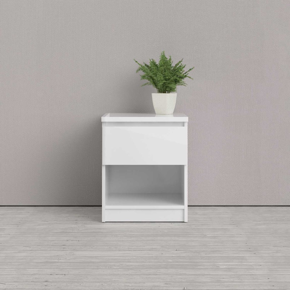 Nachttisch NAIA Nachtkonsole Nachtkästchen Weiß Hochglanz