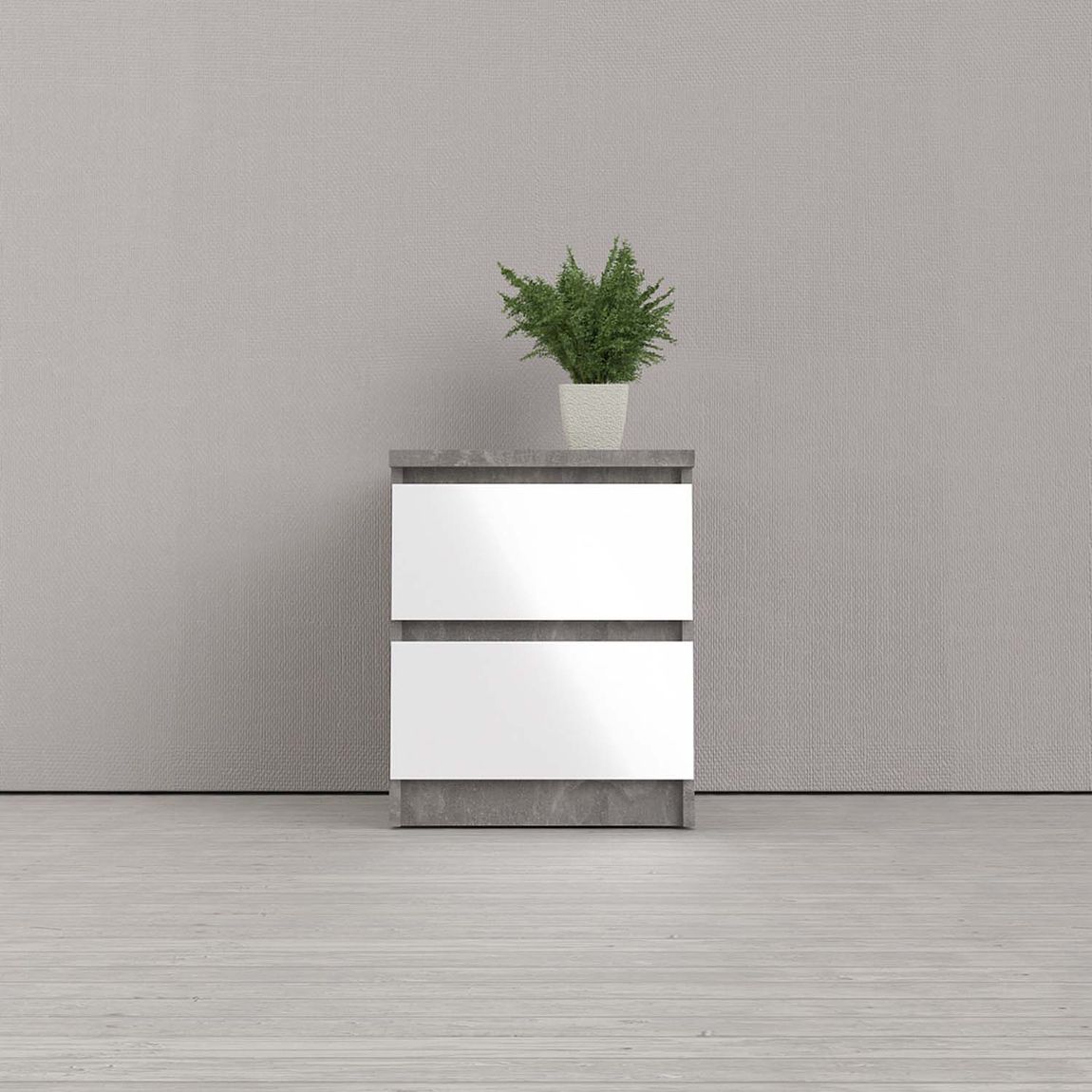 Naia Nachtkommode Kommode Beton / Weiß Hochglanz