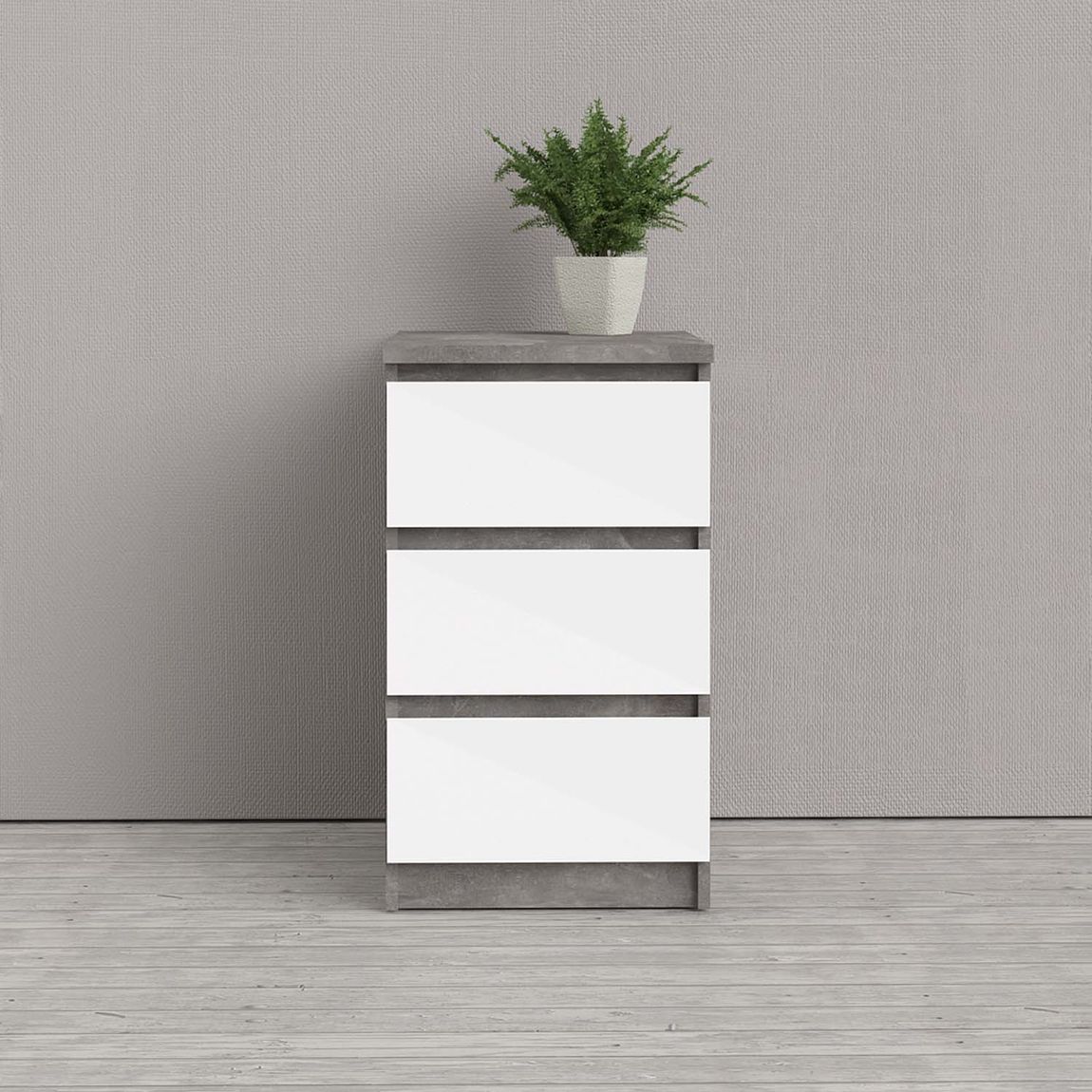 Naia Nachtkommode Kommode Beton / Weiß Hochglanz