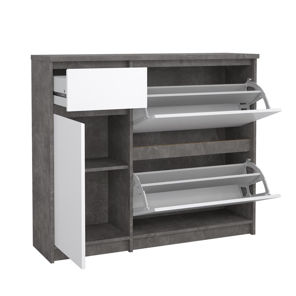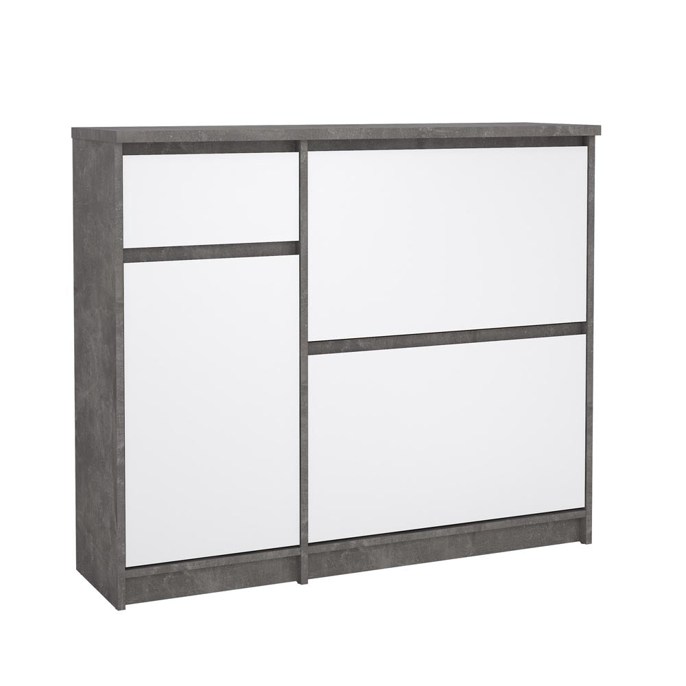 Naia Schuhschrank Oxid Beton Weiß Hochglanz