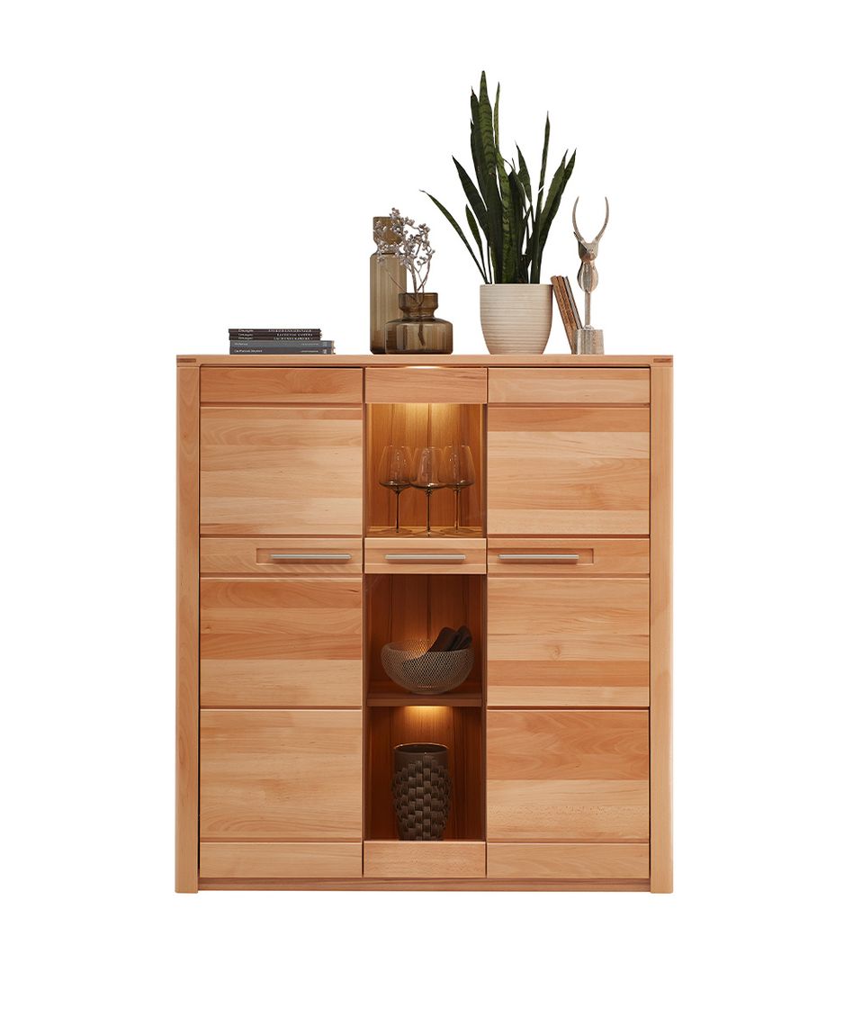 Nature One Highboard inkl. LED-Beleuchtung Kernbuche lackiert