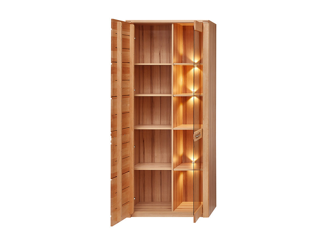 Nature One Vitrinenschrank breit inkl. LED-Beleuchtung Kernbuche lackiert