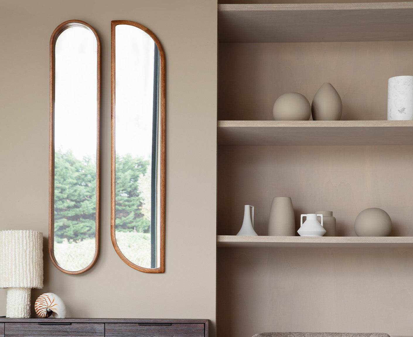 - Spiegel mit halbrunden Ecken und geraden Seiten