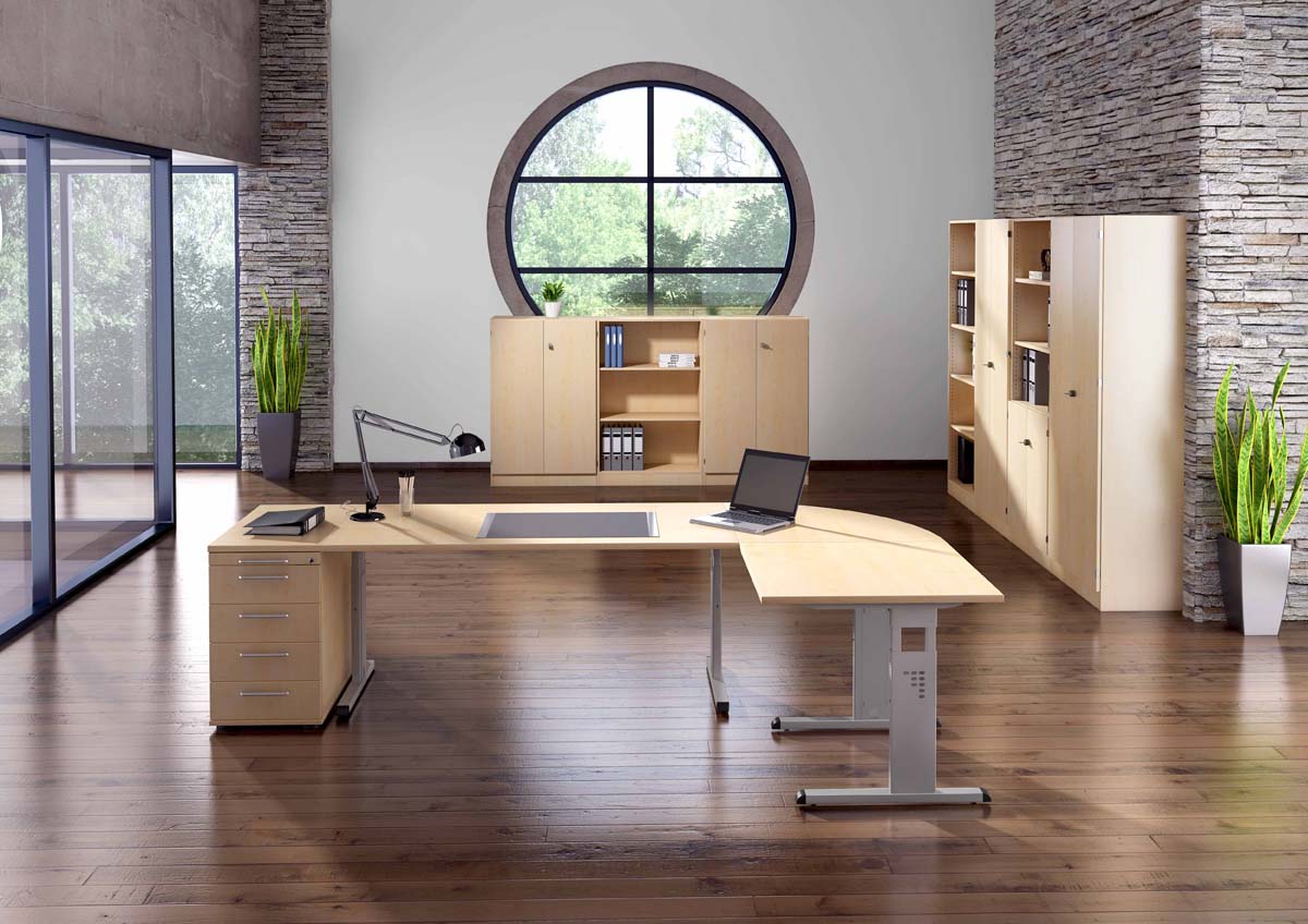 Oakland O-Serie Komplettbüro 11-teilig Ahorn / Silber
