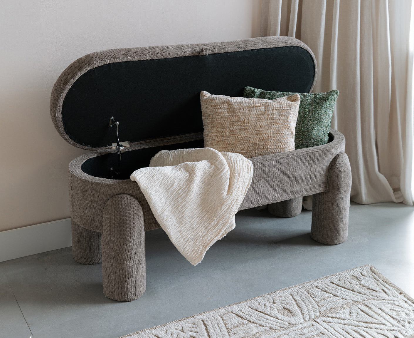 - Gepolsterte Sitzfläche mit elegantem Stoffbezug