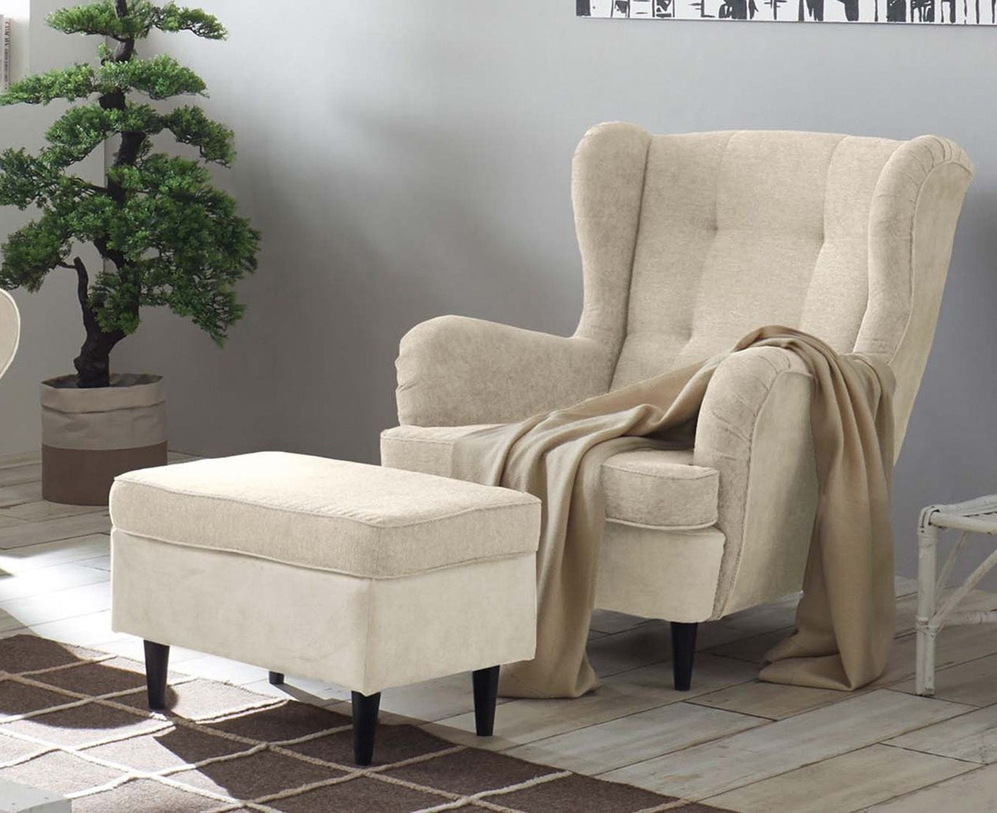 Oskar Ohrensessel 2-farbig Webstoff / Samt