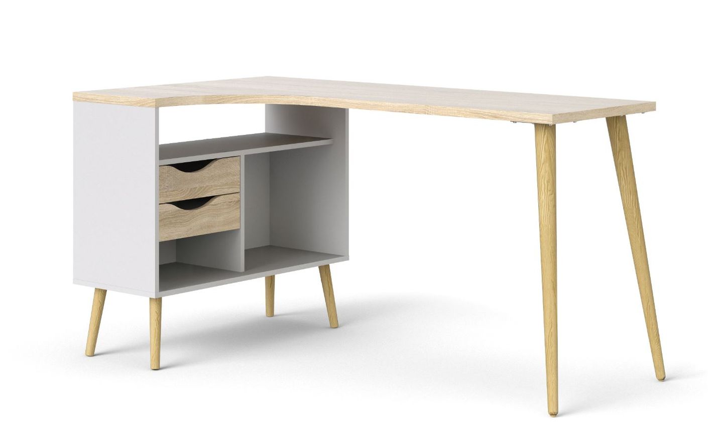 Oslo Eckschreibtisch 145 x 80 cm Winkeltisch Weiß / Eiche Sonoma