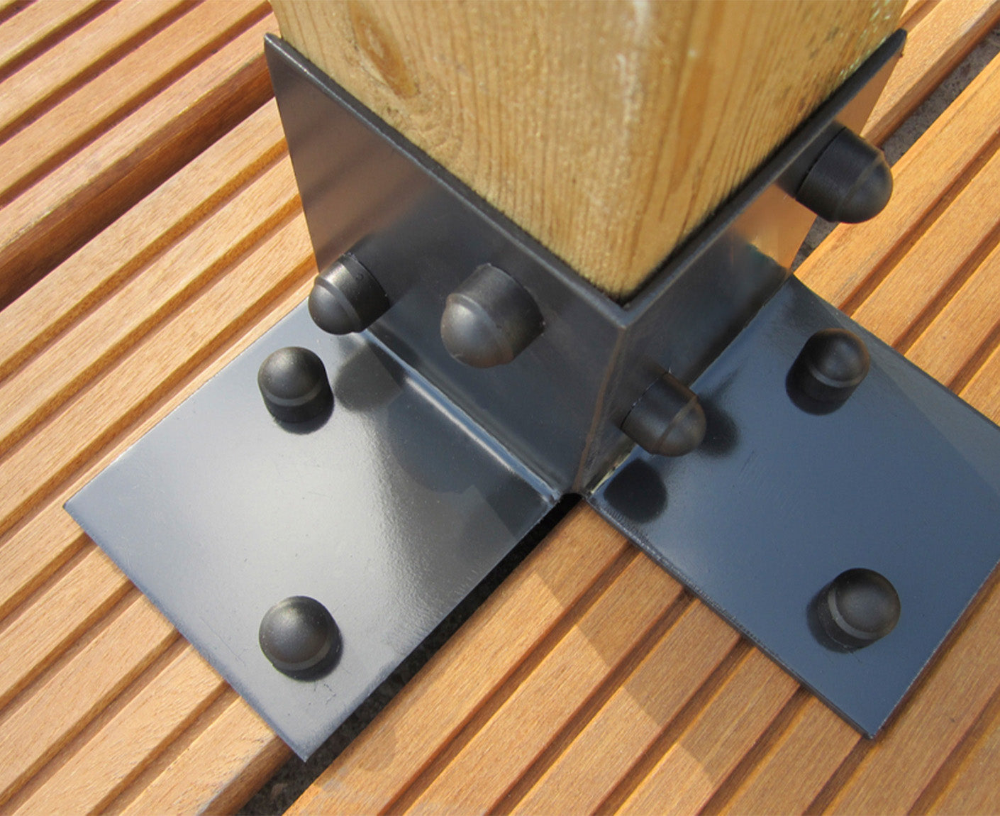 - Verwenden Sie die Bodenhalterungen zur einfachen Befestigung der Holzpfosten