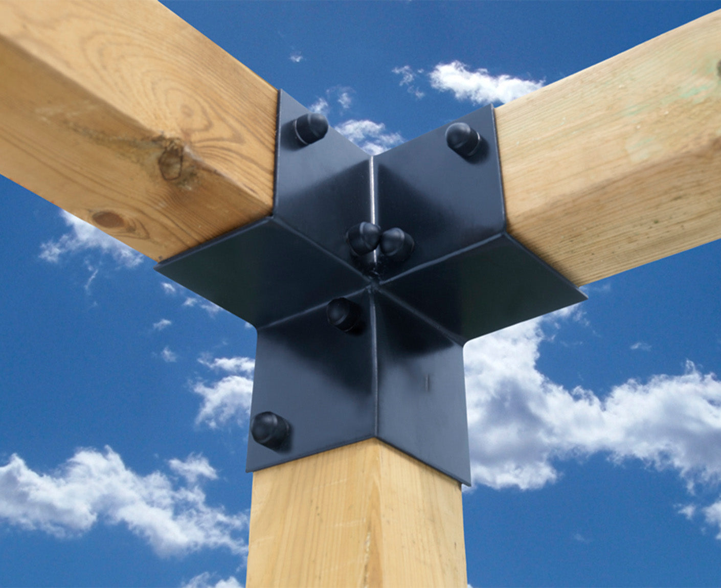- Verwenden Sie die Eckhalterungen zur einfachen Befestigung der Holzpfosten