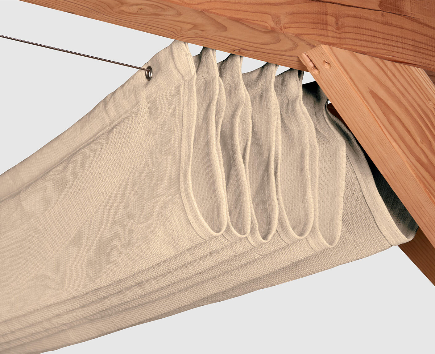 - Inklusive Befestigungsmaterial: Rollen, Rippen, Stahlkabel, Seil und Spanner
