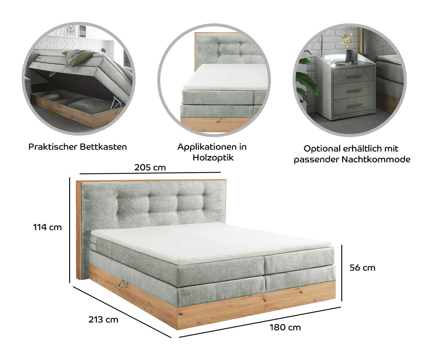 Preston Boxspringbett / Doppelbett mit Bettkasten 180x200 cm
