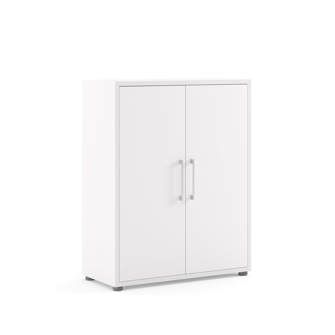 Prima bietet Schreibtische, Rollcontainer und Regale, die man wahlweise mit Schranktüren und/oder Schubladen ausstatten kann.