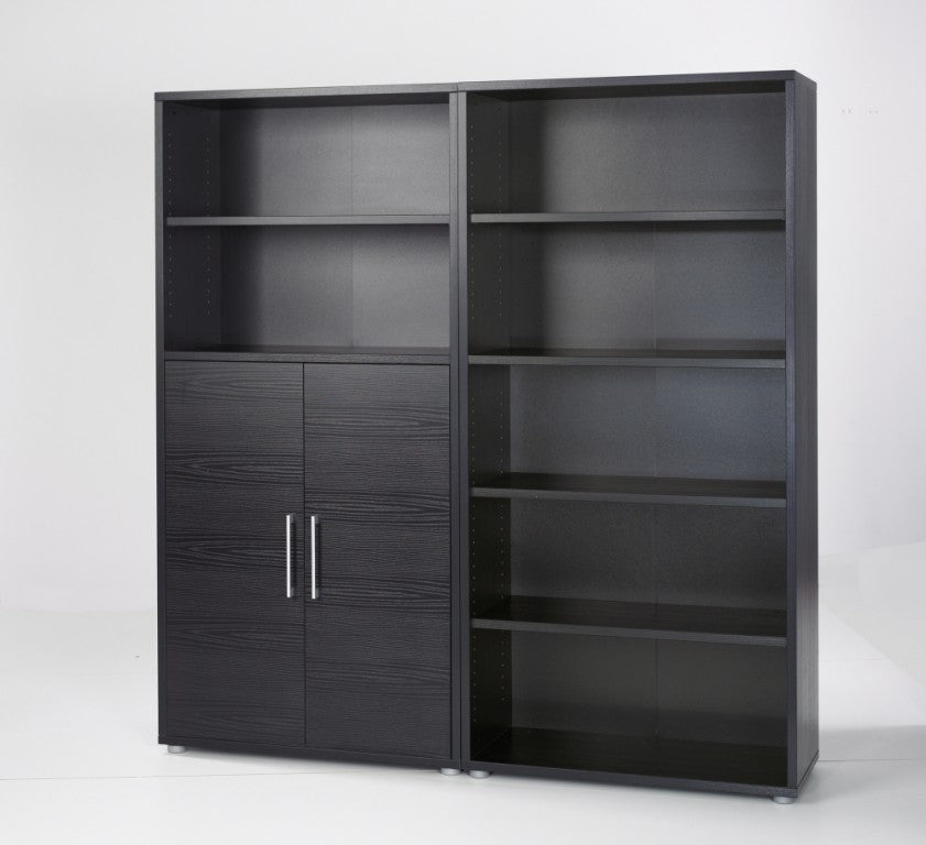 Prima bietet Schreibtische, Rollcontainer und Regale, die man wahlweise mit Schranktüren und/oder Schubladen ausstatten kann.