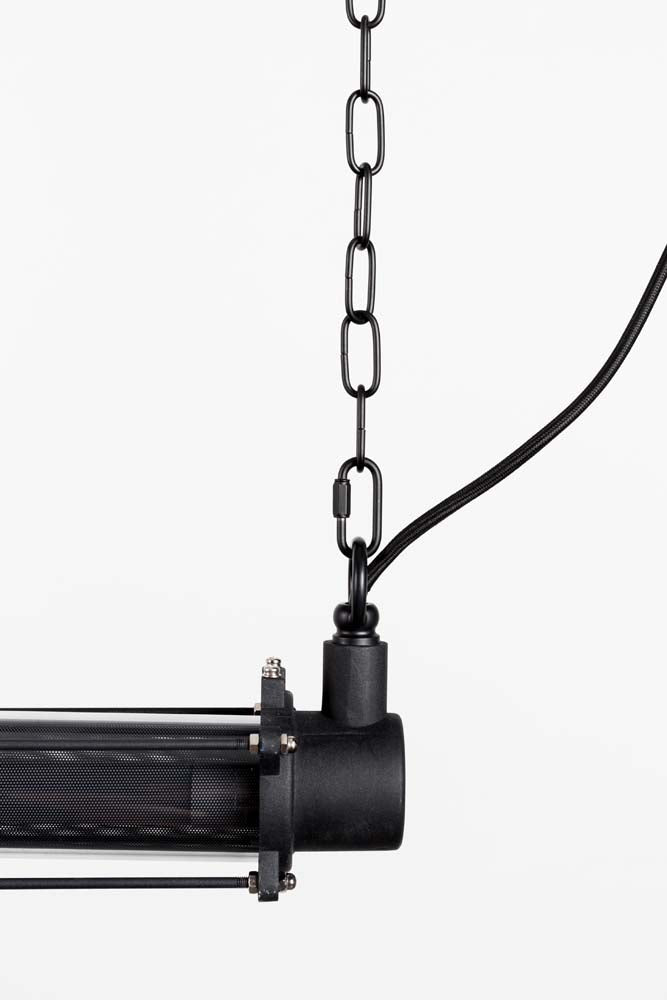 - Matte Pulvereisenschwarzfarbton mit Rauchglas, mit perforiertem Blech innen beschichtet. Schwarzpulver Eisenketten und Baldachin beschichtet. Schwarz texturierte Kabel.