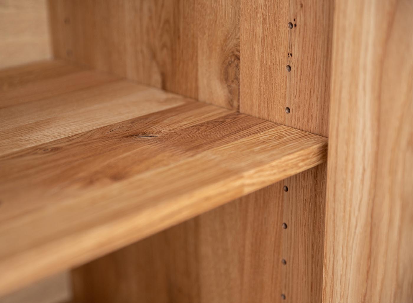 Front: Massivholz Eiche Natur, Applikation Schwarz Massivholz Eiche