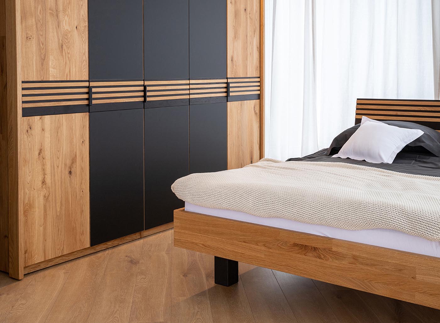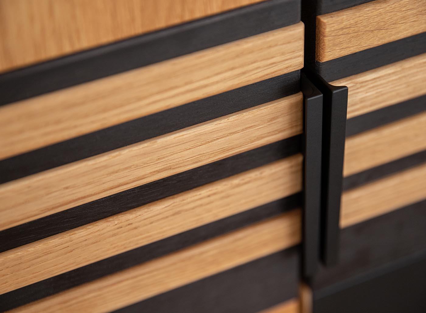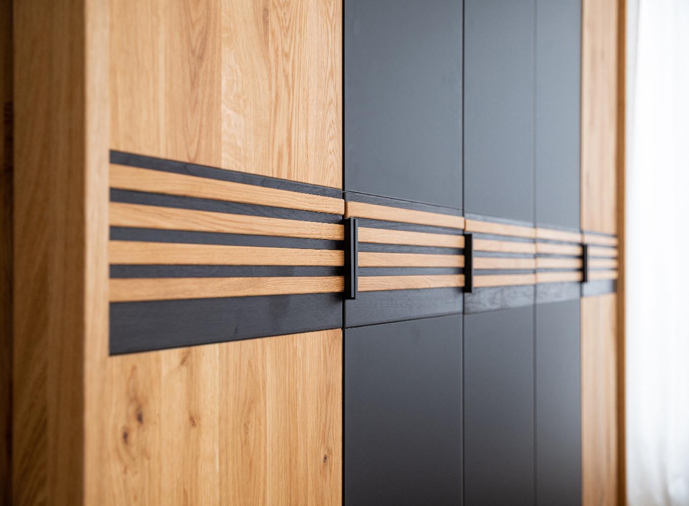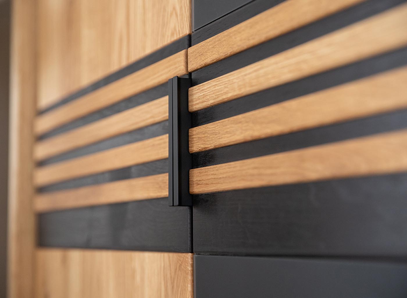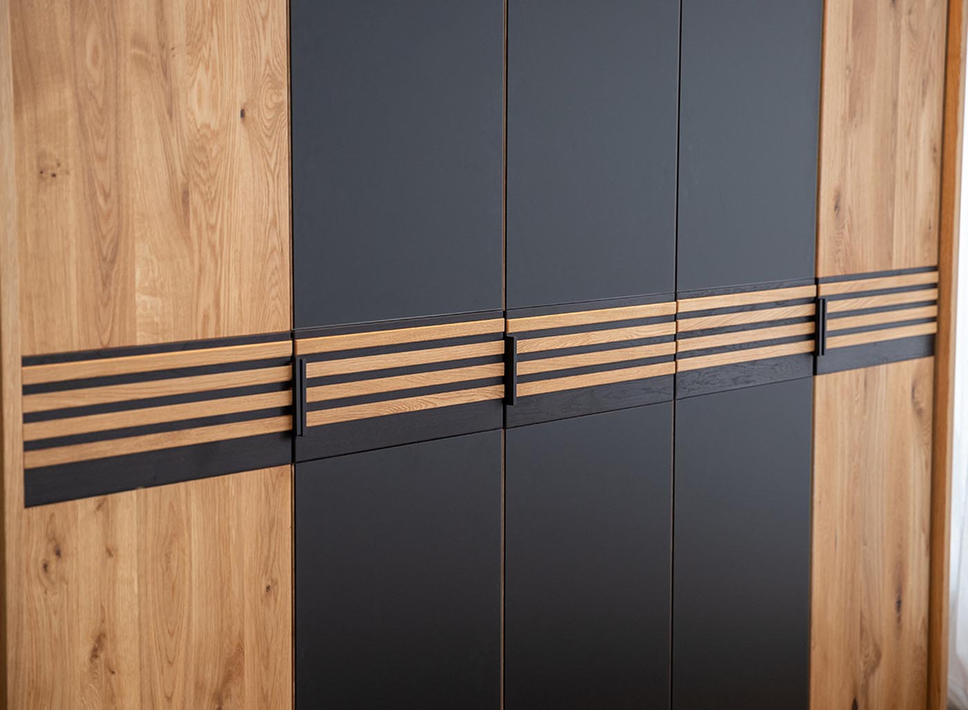 - Schwarze Applikationen in Massivholzeiche