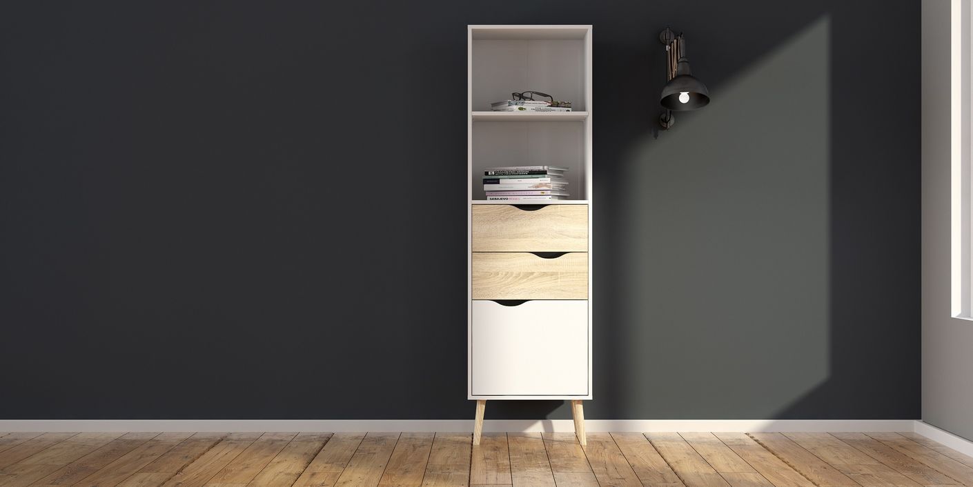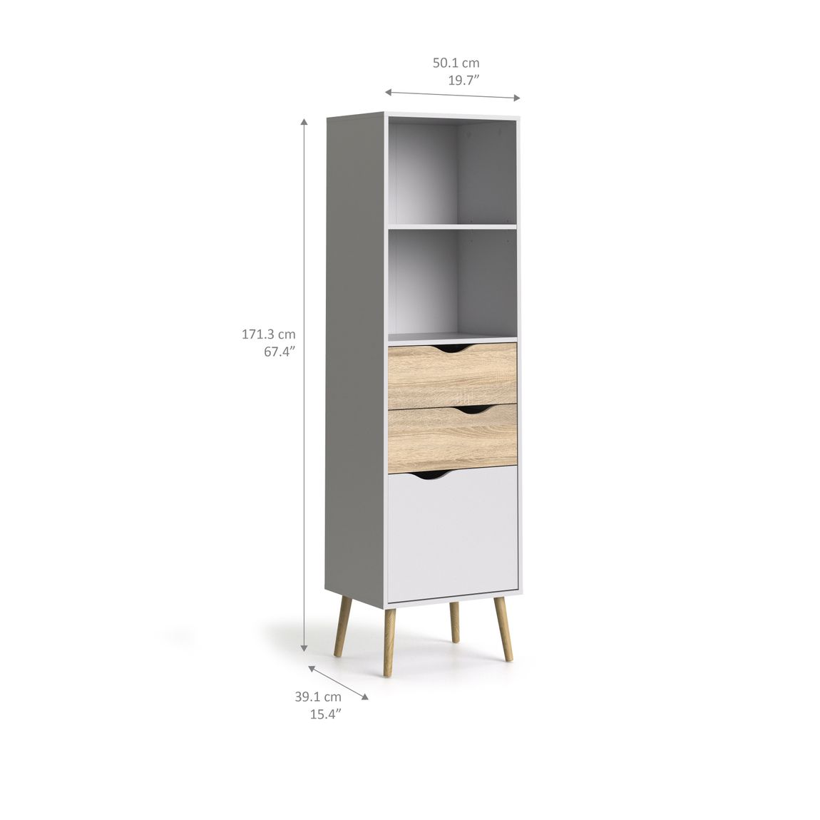 Regal OSLO Wohnregal Bücherregal Standregal Weiß / Eiche Struktur
