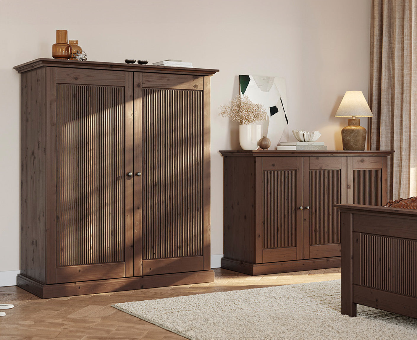 Rosella Kleiderschrank 2-Türig Massivholz Tabacco / Altsilber