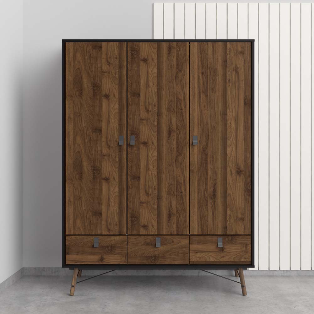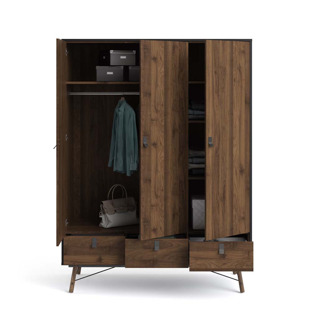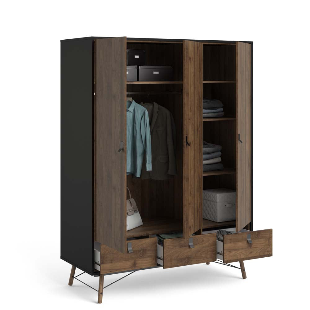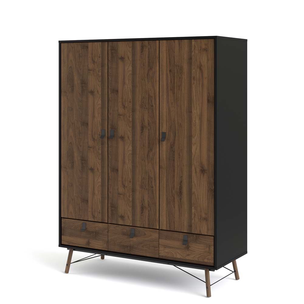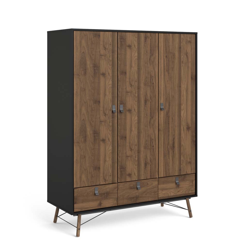 Ry Kleiderschrank Schwarz Matt Walnuss