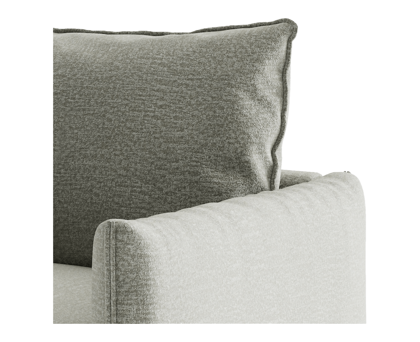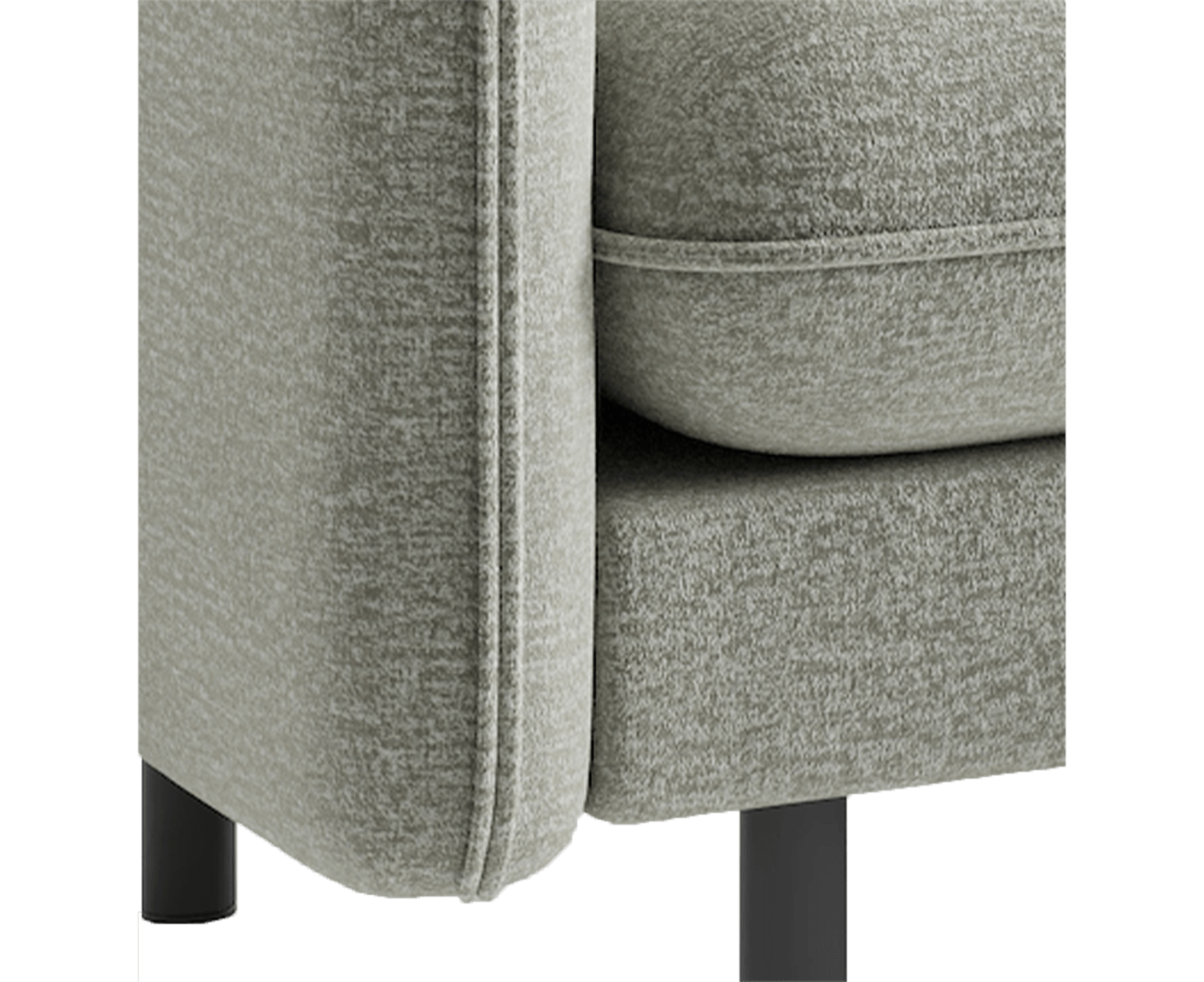 - Rückenpolster: geflockter Schaumstoff, gemischt mit silikonisierter Polyesterfaser