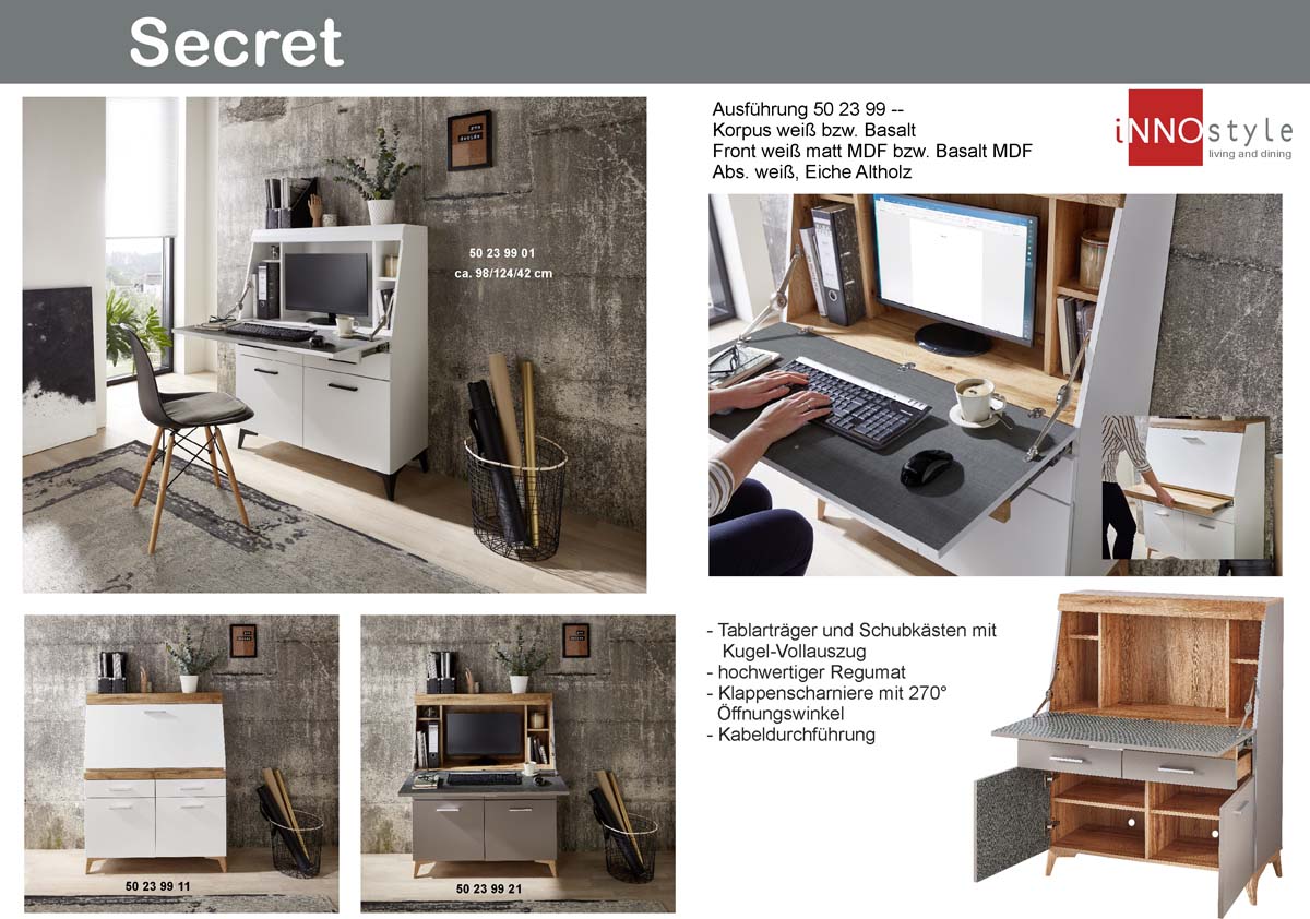 - Front: Mattweiß MDF, Artisan Eiche MDF bzw. Basalt MDF, Absetzung Eiche Altholz